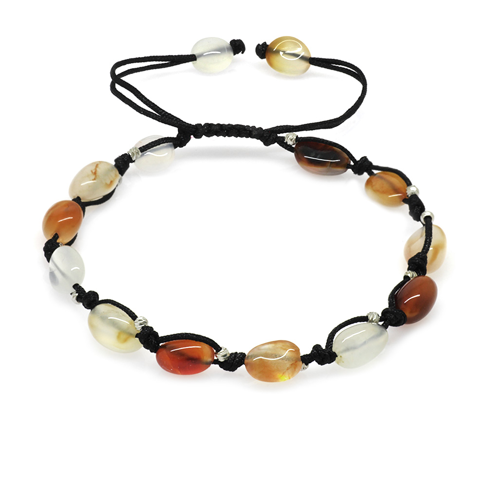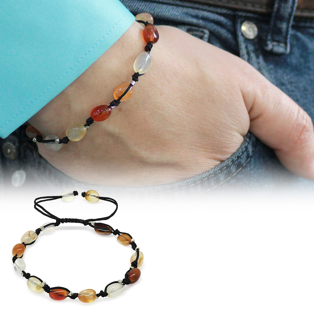 Makrome Örgülü Naturel Kesim Dorika Top Detaylı Akik Doğaltaş Erkek Bileklik