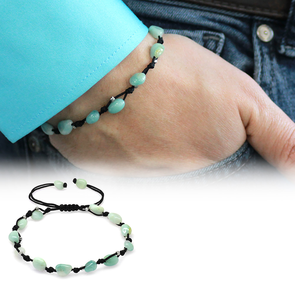 Makrome Örgülü Naturel Kesim Dorika Top Detaylı Amazonit Doğaltaş Erkek Bileklik