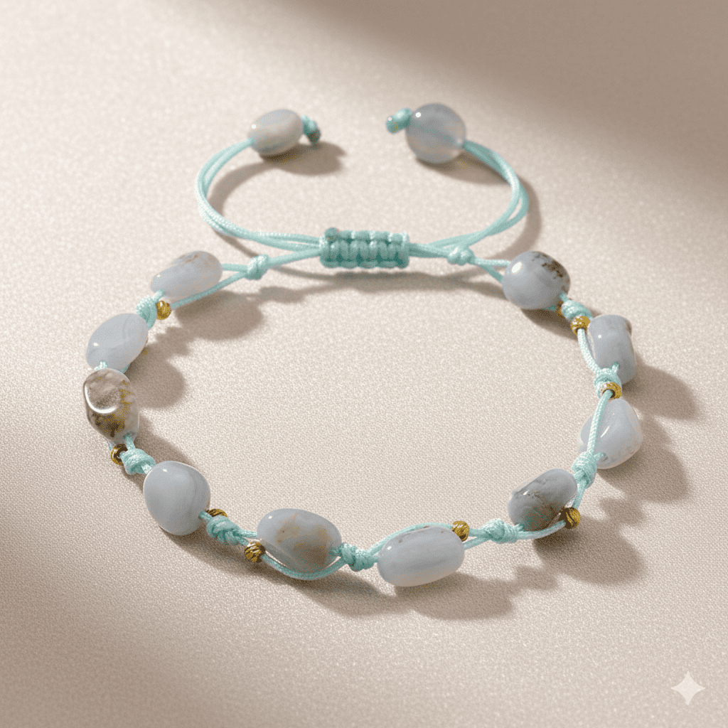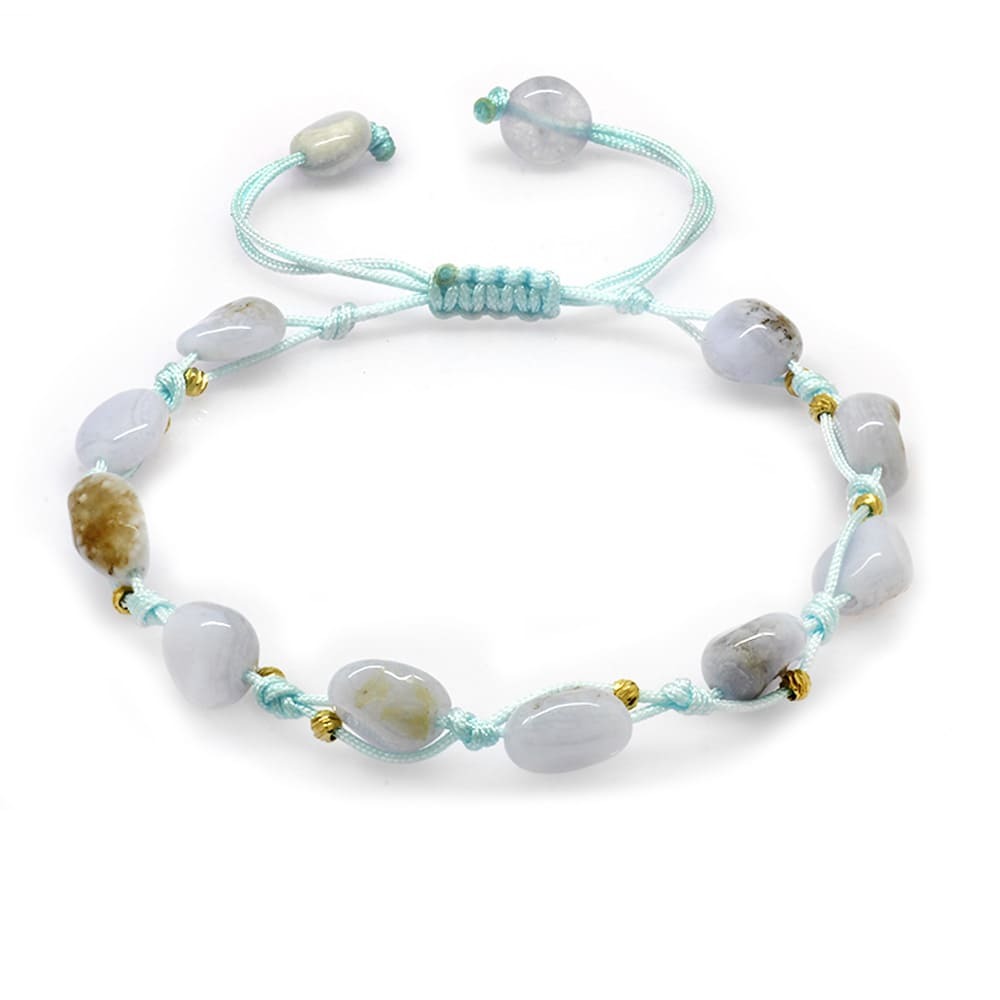Makrome Örgülü Naturel Kesim Dorika Top Detaylı Kalsedon Doğaltaş Kadın Bileklik