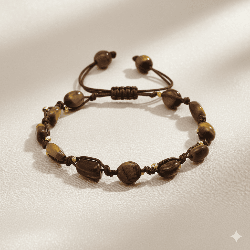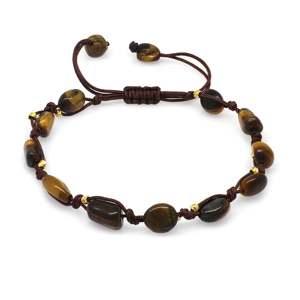 Makrome Örgülü Naturel Kesim Dorika Top Detaylı Kaplan Gözü Doğaltaş Kadın Bileklik
