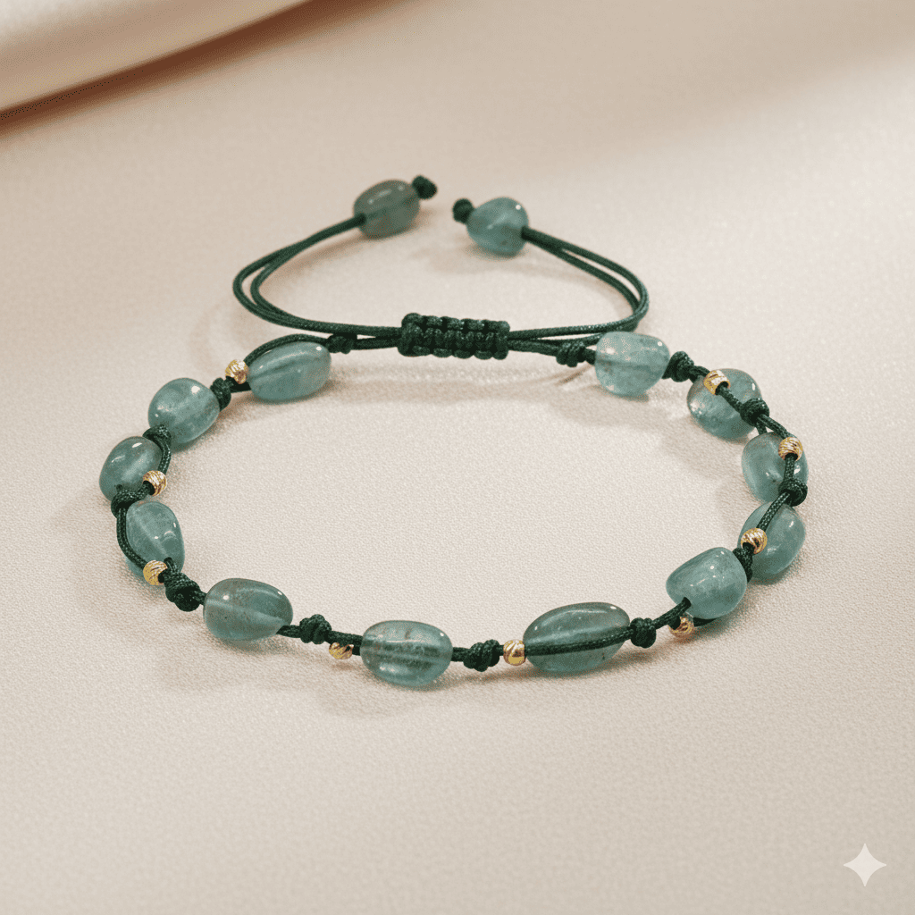 Makrome Örgülü Naturel Kesim Dorika Top Detaylı Larimar Doğaltaş Kadın Bileklik - 1