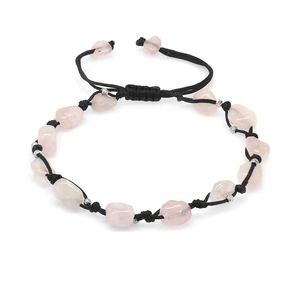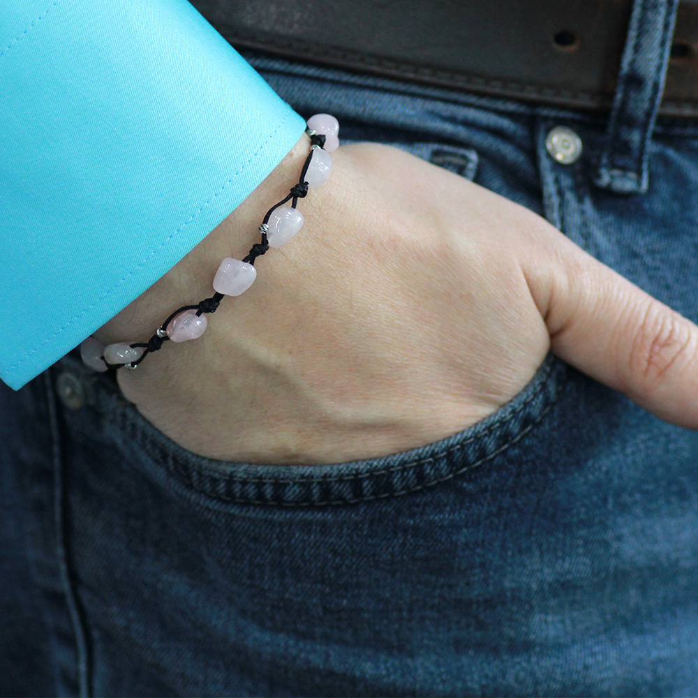 Makrome Örgülü Naturel Kesim Dorika Top Detaylı Pembe Kuvars Doğaltaş Erkek Bileklik