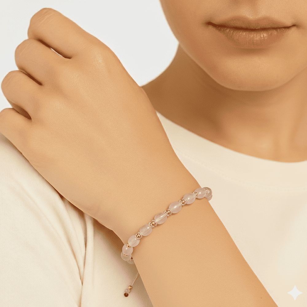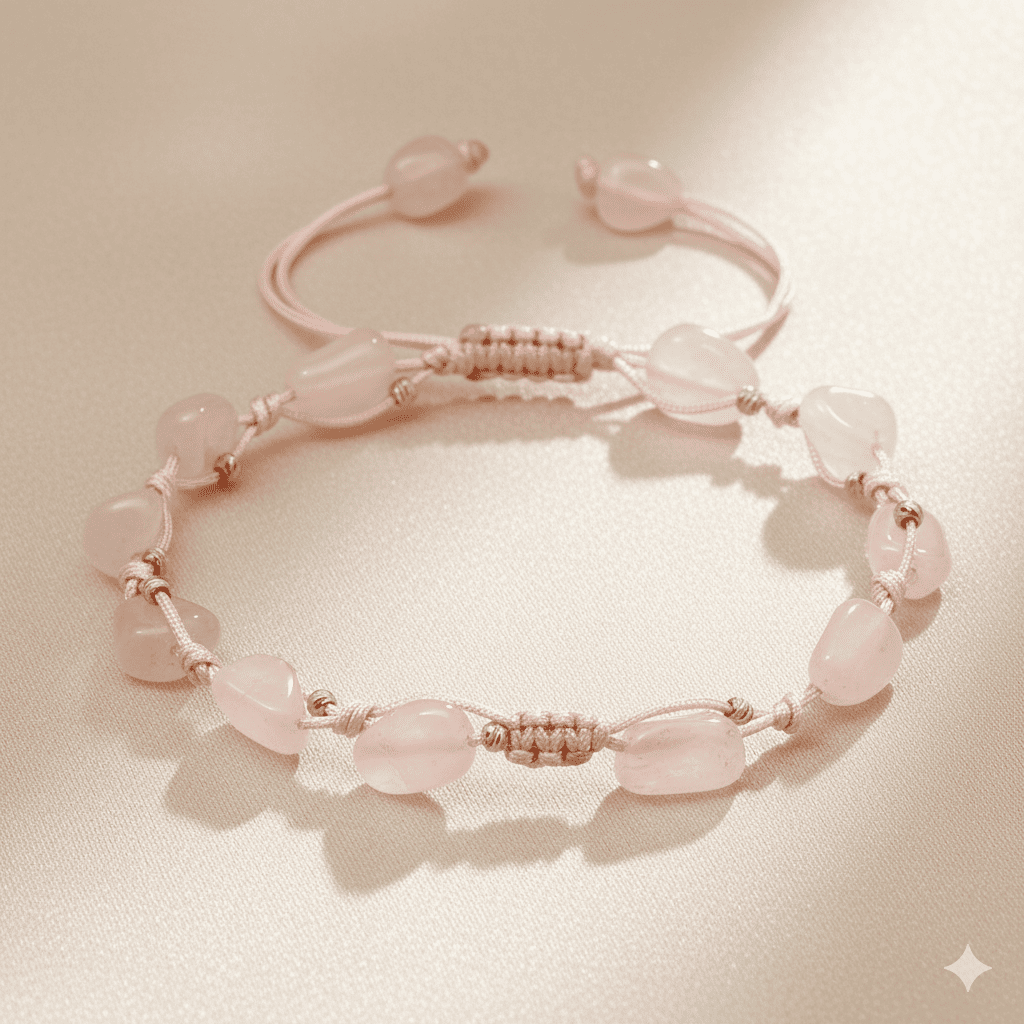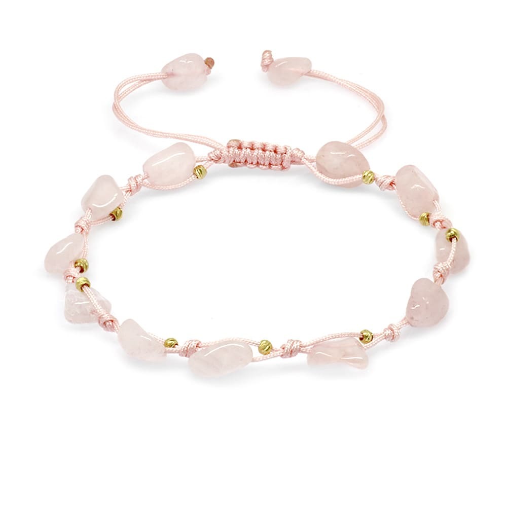 Makrome Örgülü Naturel Kesim Dorika Top Detaylı Pembe Kuvars Doğaltaş Kadın Bileklik