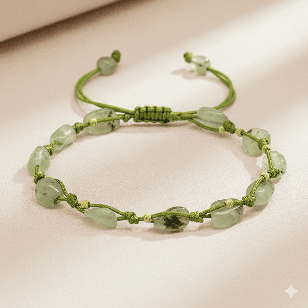 Makrome Örgülü Naturel Kesim Dorika Top Detaylı Prinayt Doğaltaş Kadın Bileklik
