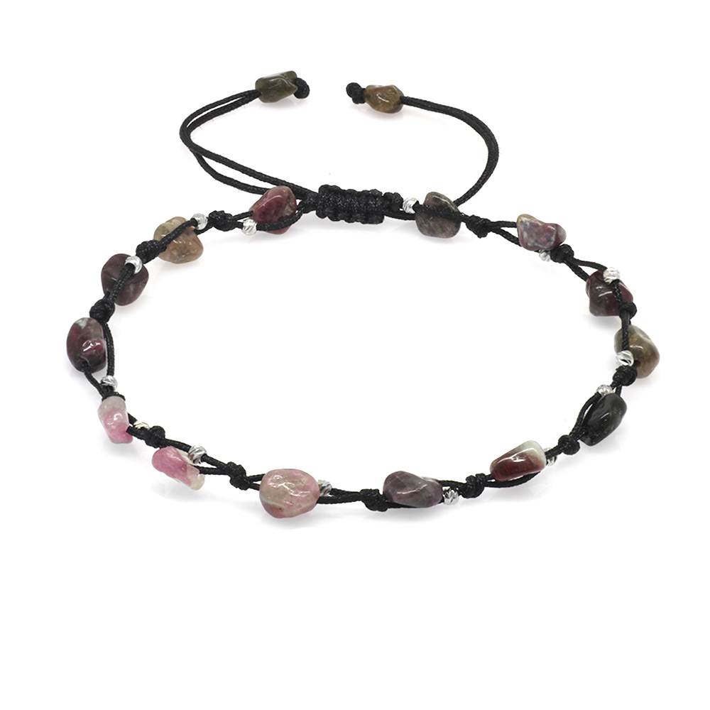 Makrome Örgülü Naturel Kesim Dorika Top Detaylı Turmalin Doğaltaş Erkek Bileklik