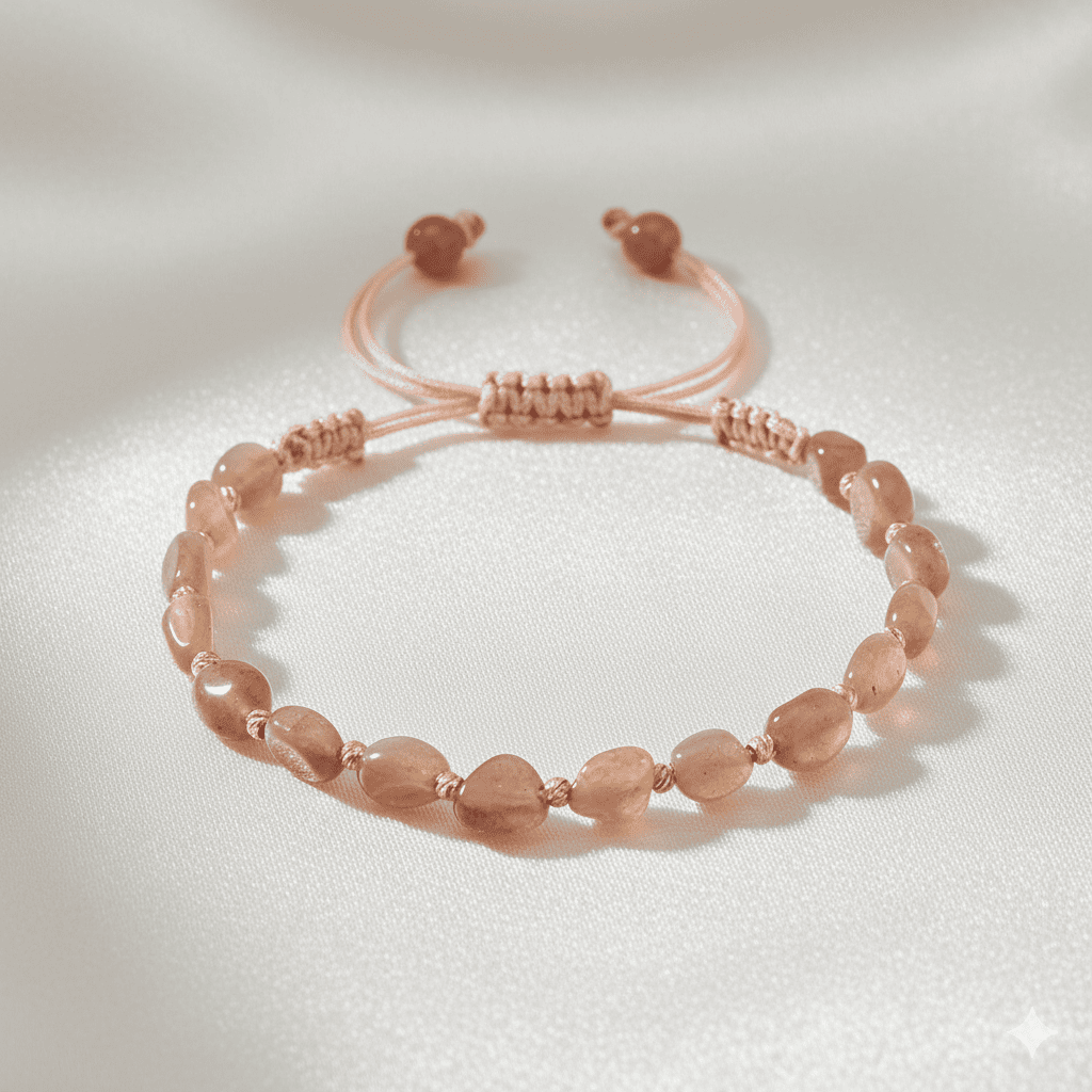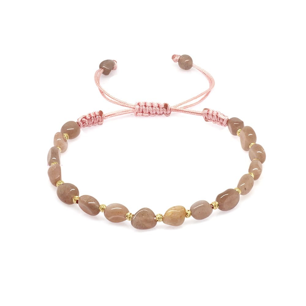 Makrome Örgülü Naturel Kesim Güneş Taşı Doğaltaş Kadın Bileklik