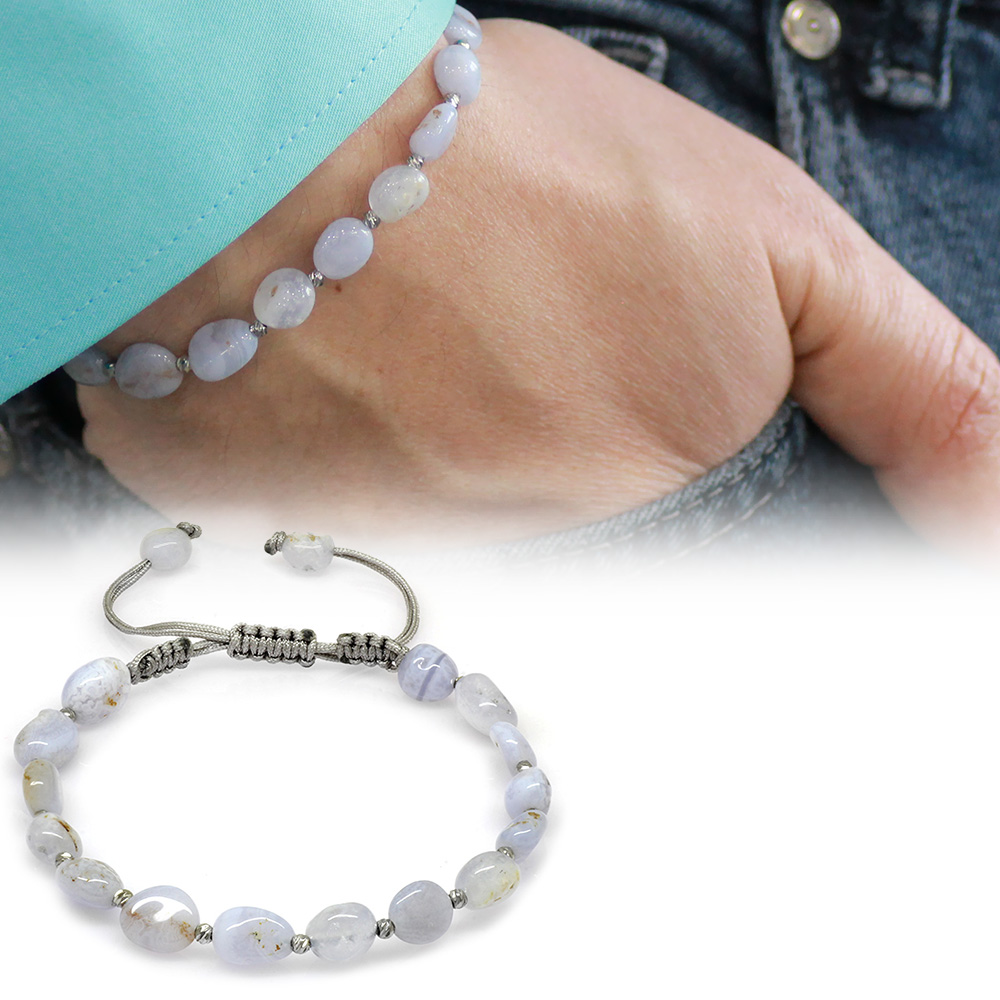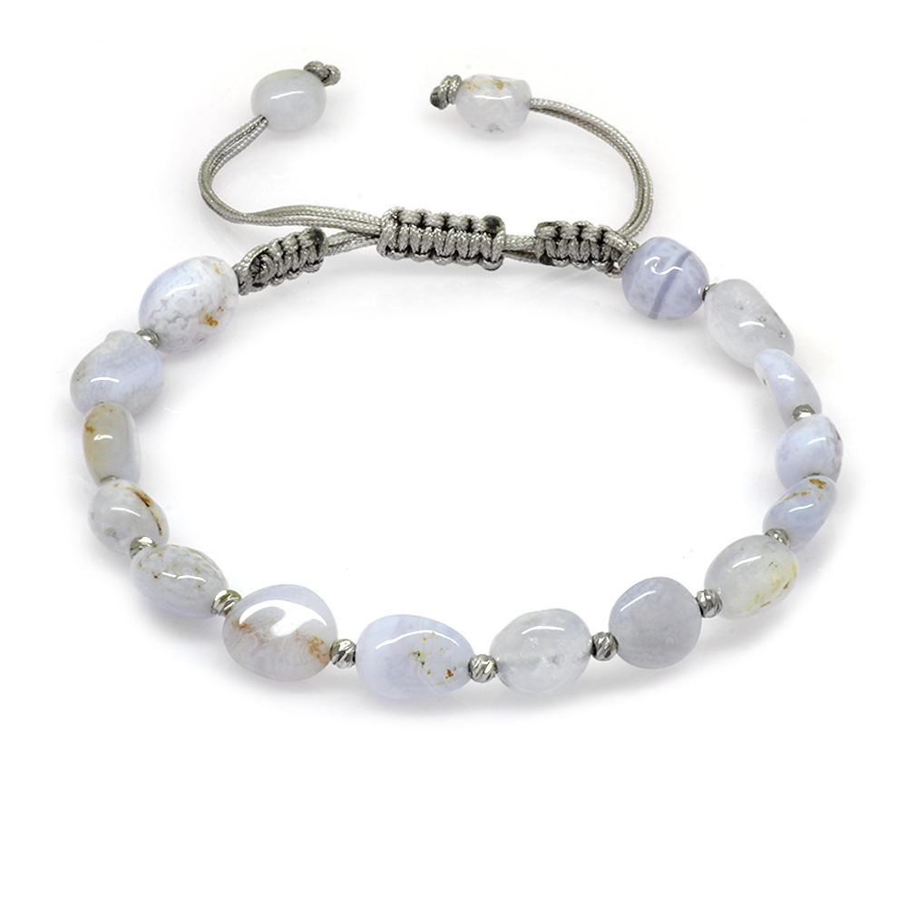 Makrome Örgülü Naturel Kesim Kalsedon Doğaltaş Erkek Bileklik