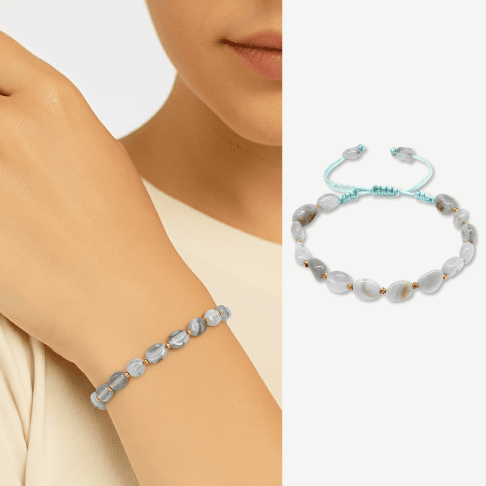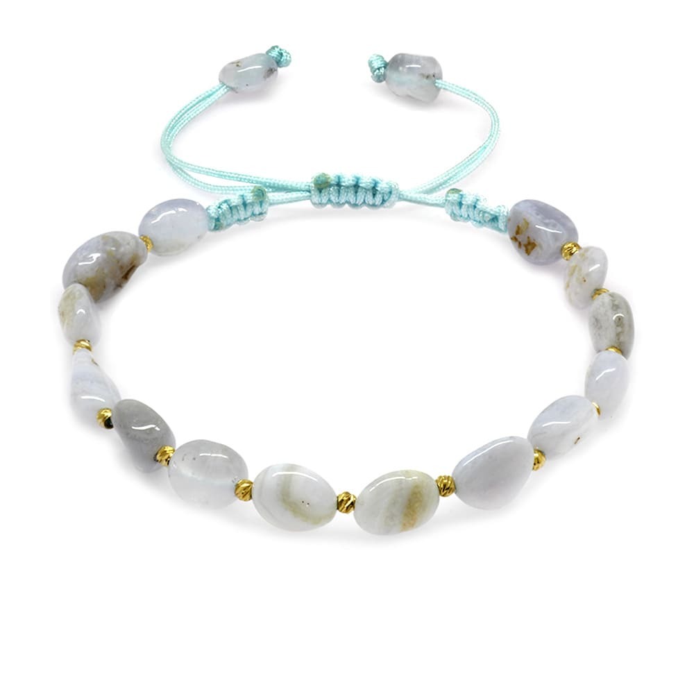Makrome Örgülü Naturel Kesim Kalsedon Doğaltaş Kadın Bileklik