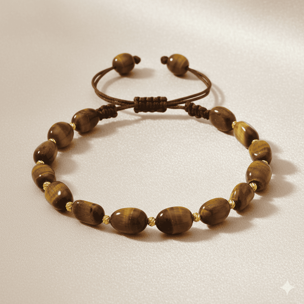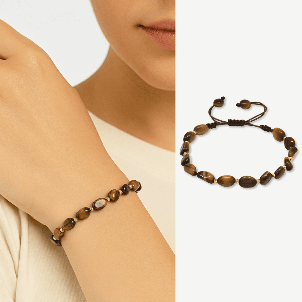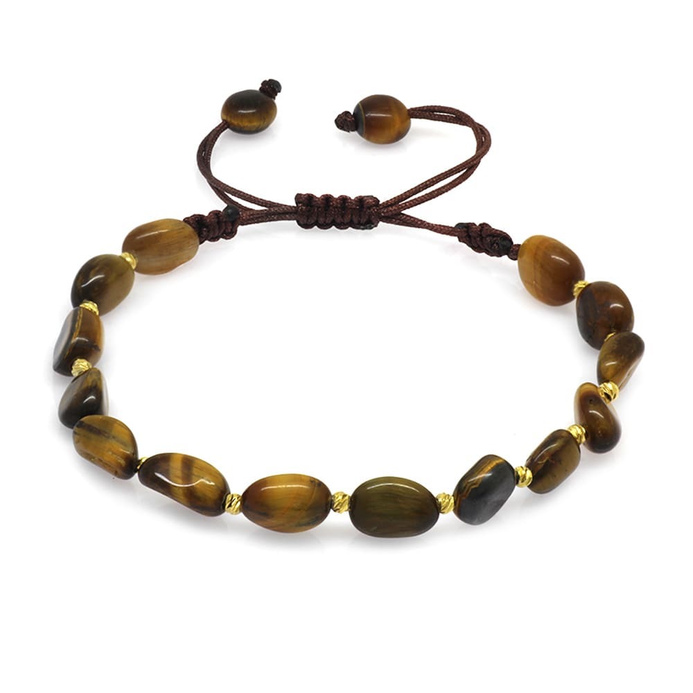 Makrome Örgülü Naturel Kesim Kaplan Gözü Doğaltaş Kadın Bileklik
