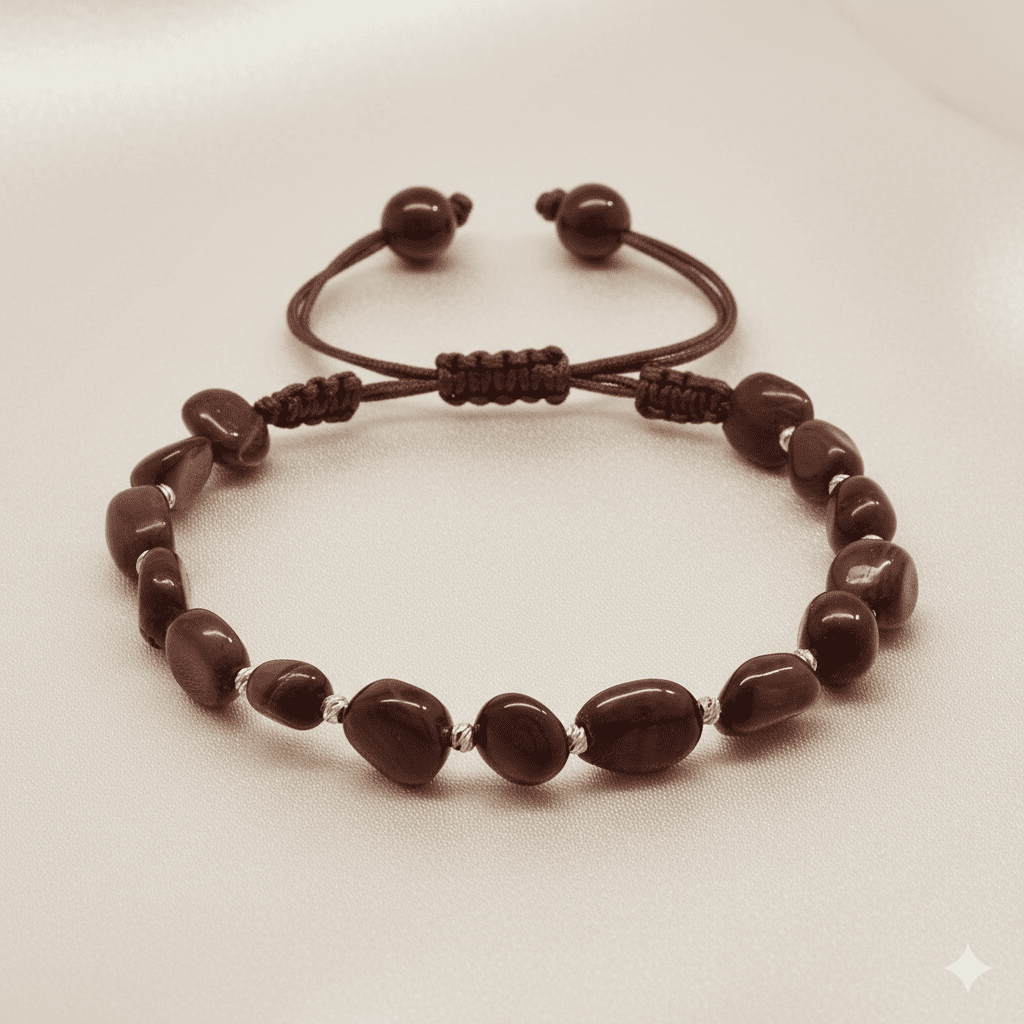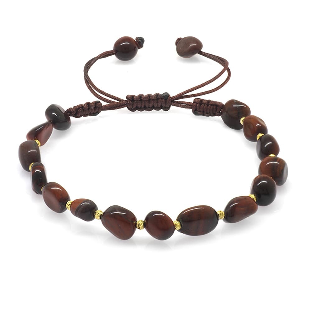 Makrome Örgülü Naturel Kesim Koyu Renk Kaplan Gözü Doğaltaş Kadın Bileklik