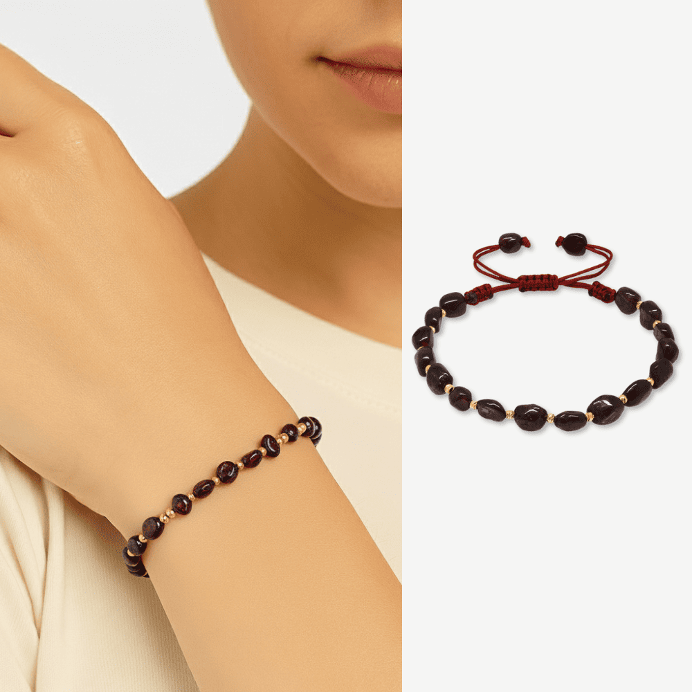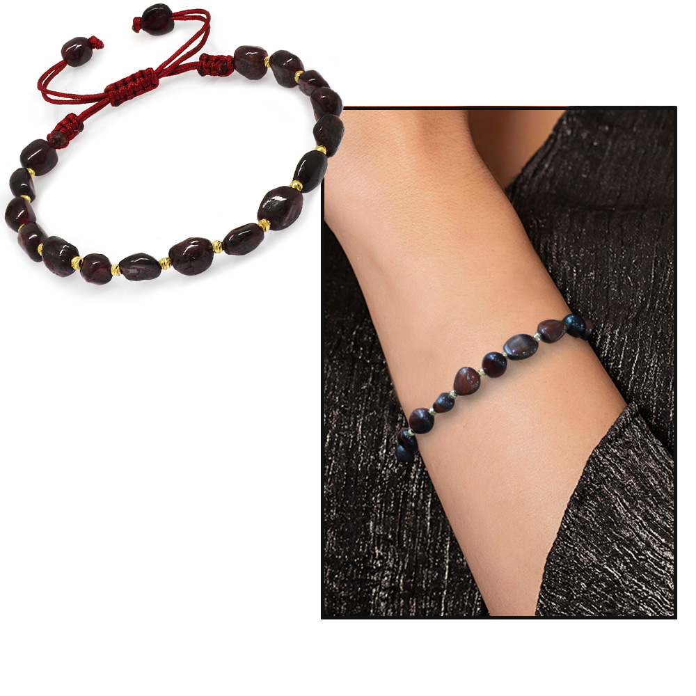 Makrome Örgülü Naturel Kesim Lal Doğaltaş Kadın Bileklik