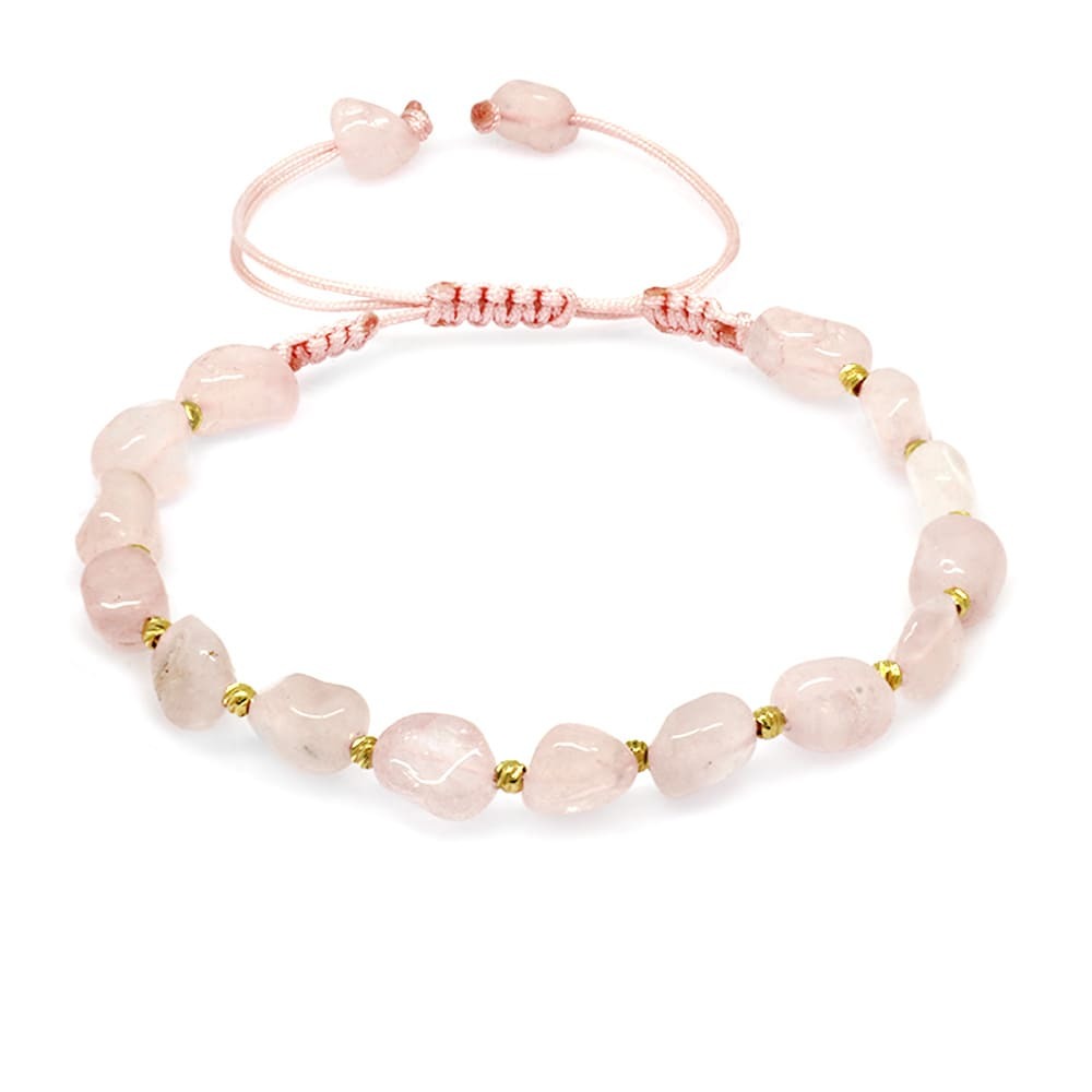 Makrome Örgülü Naturel Kesim Pembe Kuvars Doğaltaş Kadın Bileklik