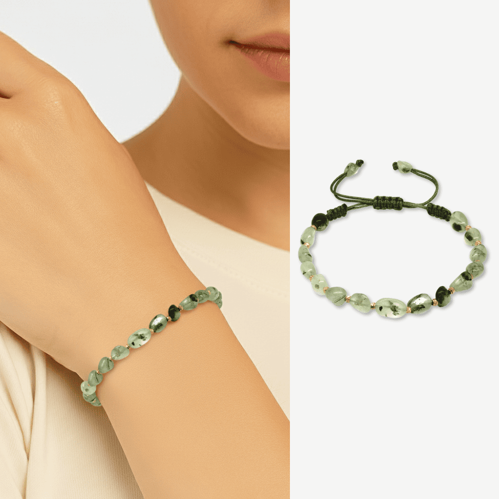 Makrome Örgülü Naturel Kesim Prinayt Doğaltaş Kadın Bileklik