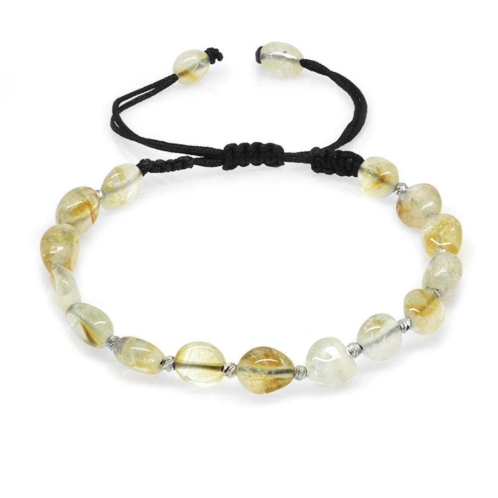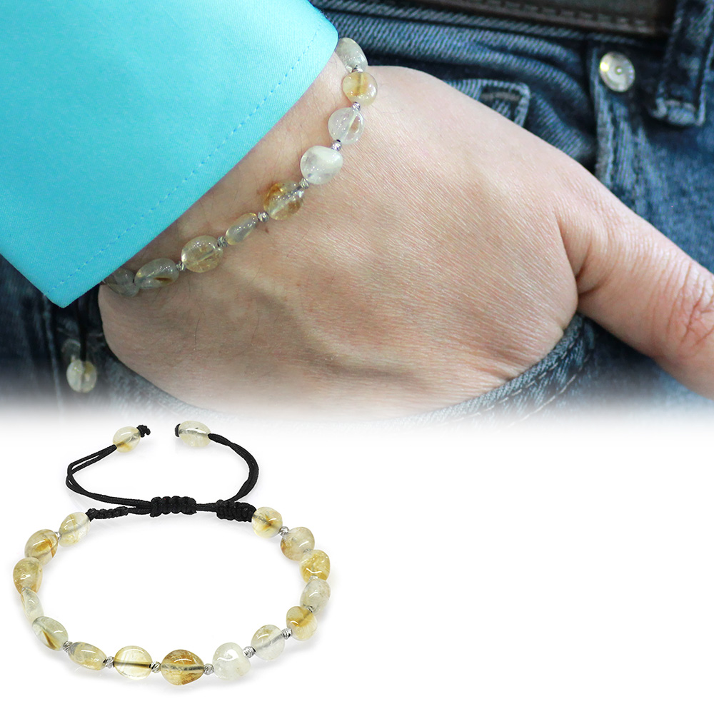 Makrome Örgülü Naturel Kesim Sitrin Doğaltaş Erkek Bileklik