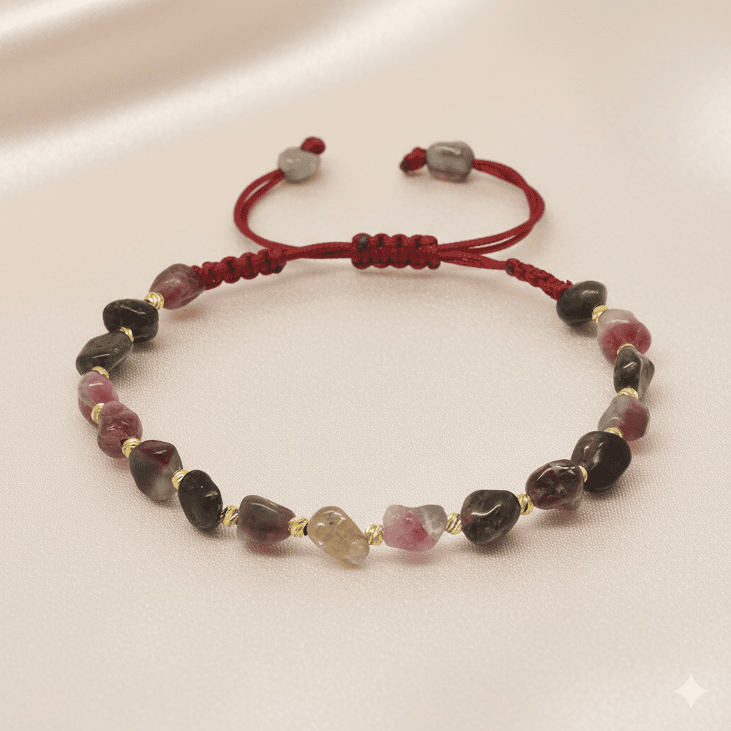 Makrome Örgülü Naturel Kesim Turmalin Doğaltaş Kadın Bileklik