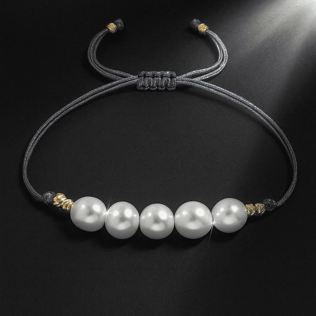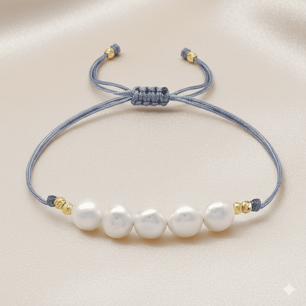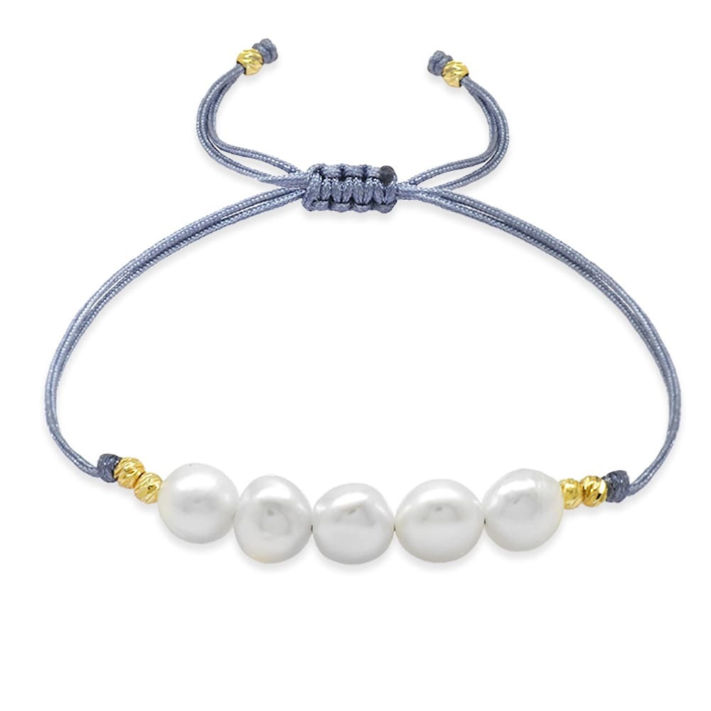 Makrome Örgülü Naturel Kesim Gri İpli Sarı Dorika Top Süslemeli Dpğal İnci Doğaltaş Kadın Bileklik