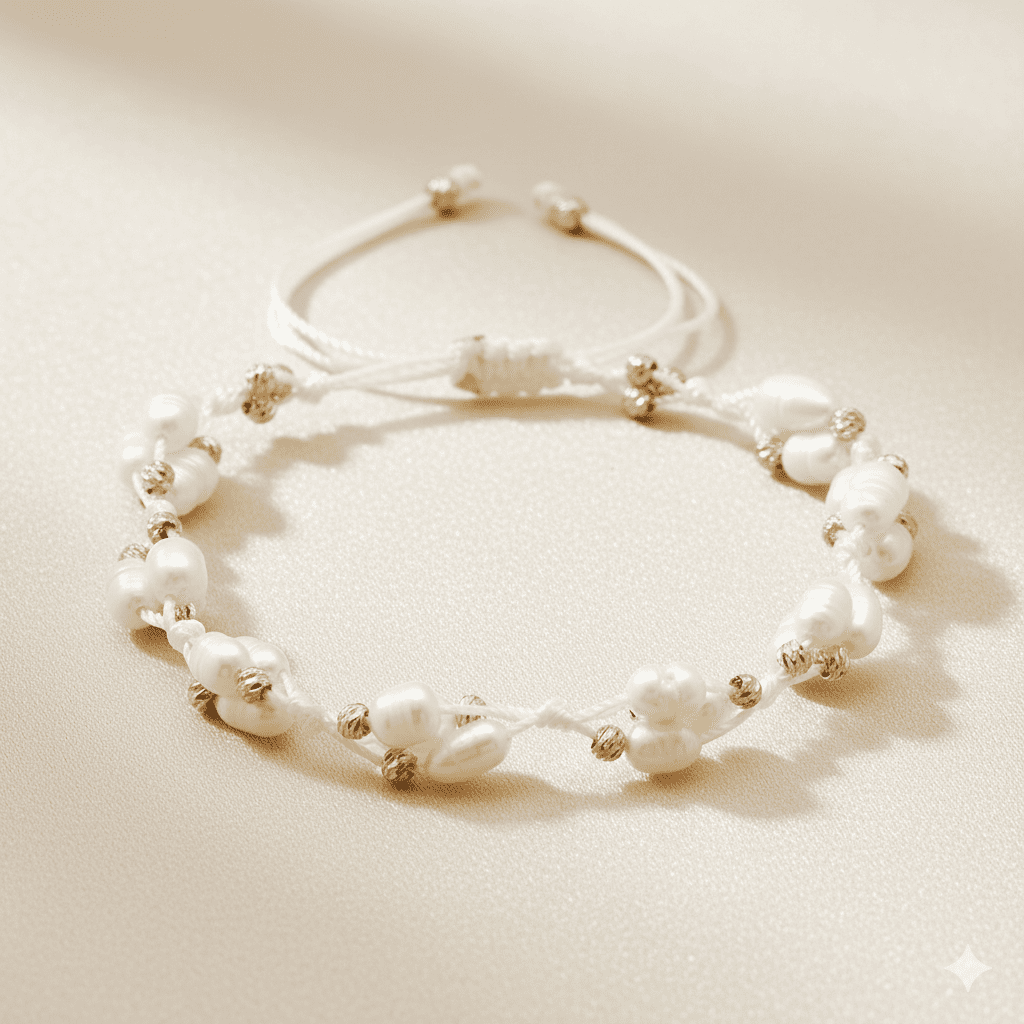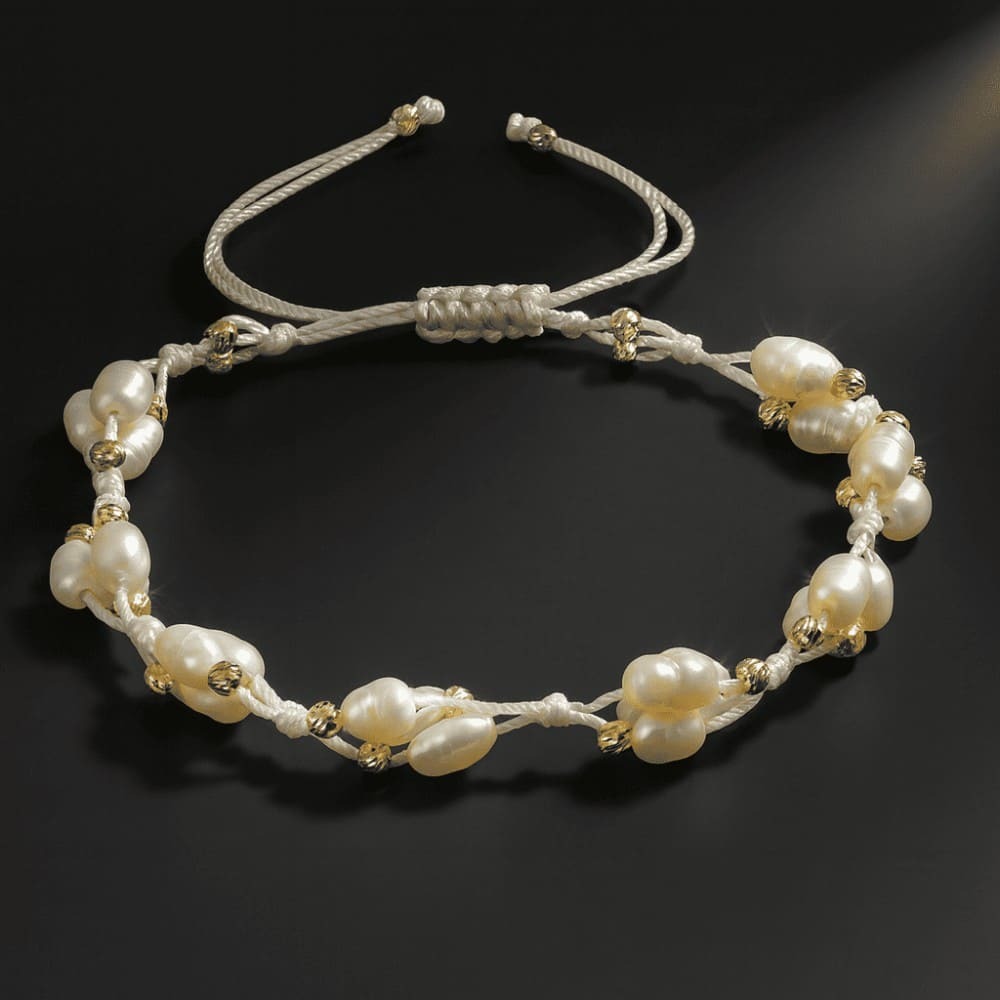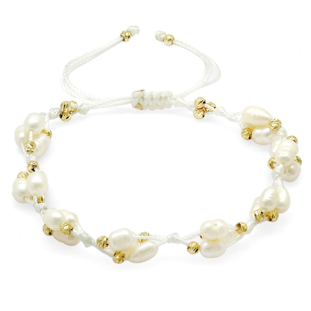 Makrome Örgülü Naturel Kesim Doğal İnci Doğaltaş Kadın Bileklik