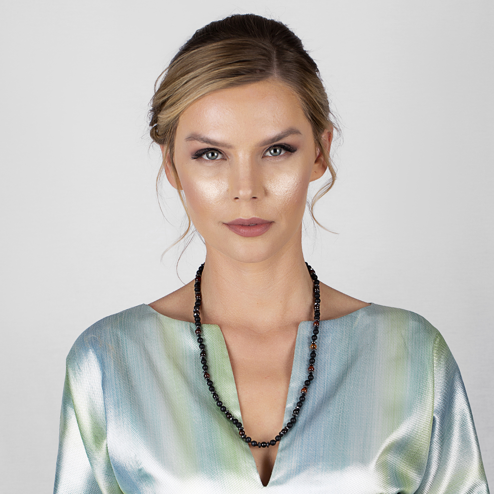 Makrome Örgülü Oniks Akik Hematit Kombinli Doğaltaş Kadın Kolye