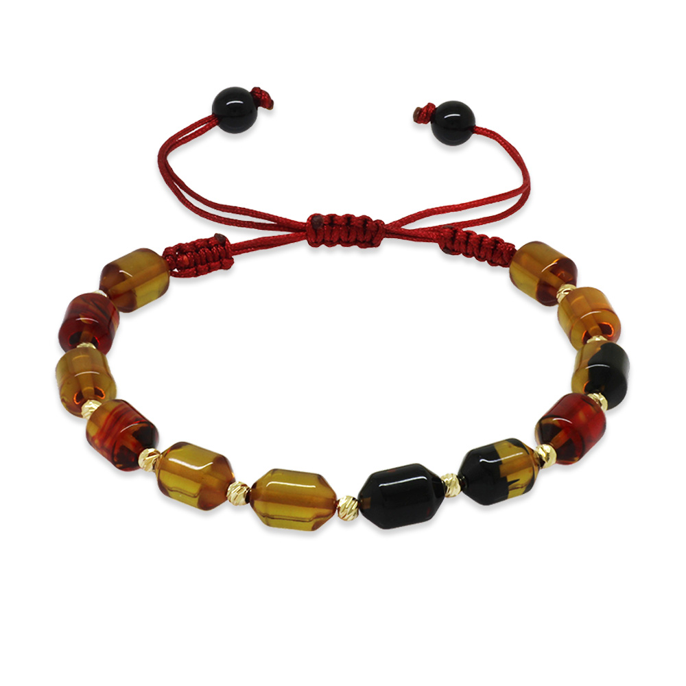 Makrome Örgülü Sarı Dorika Top Süslemeli Bala Siyah Ateş Kehribar Kadın Bileklik