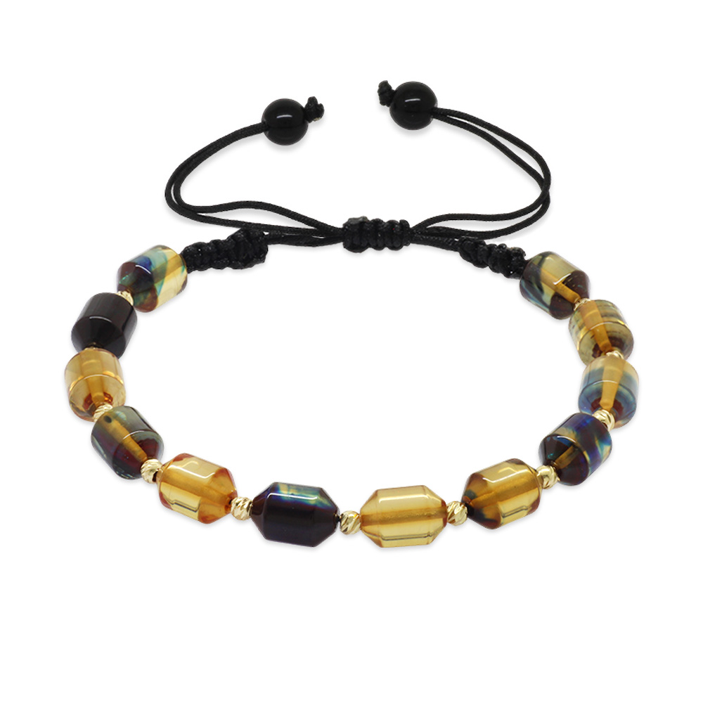Makrome Örgülü Sarı Dorika Top Süslemeli Mavi Beyaz Ateş Kehribar Kadın Bileklik