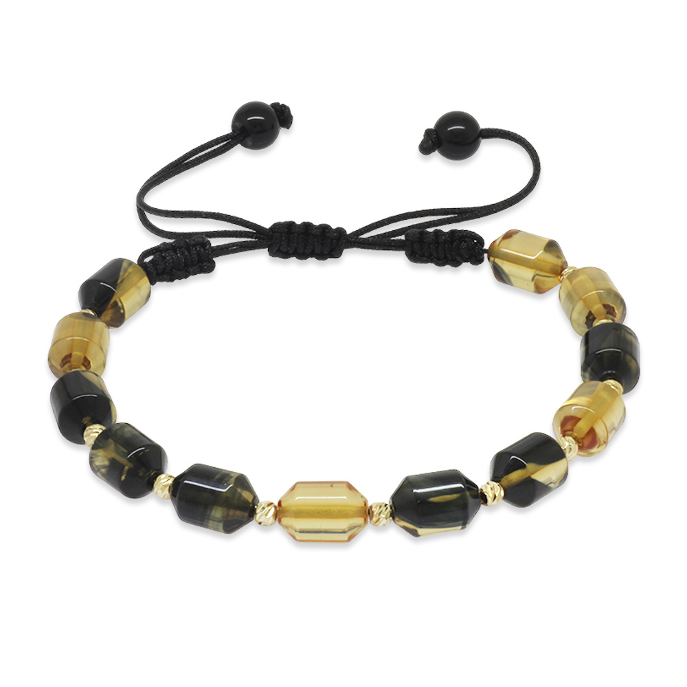 Makrome Örgülü Sarı Dorika Top Süslemeli Siyah Beyaz Ateş Kehribar Kadın Bileklik