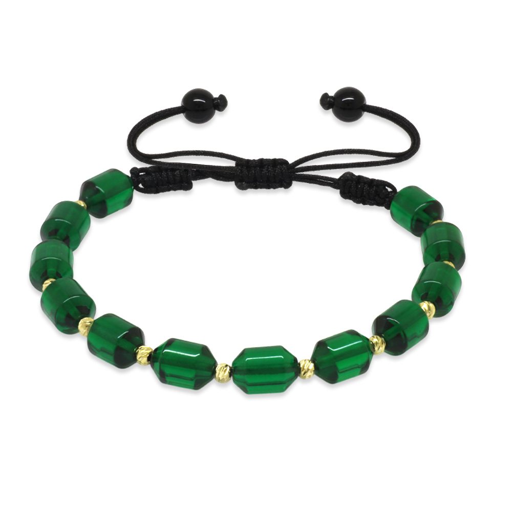 Makrome Örgülü Sarı Dorika Top Süslemeli Yeşil Ateş Kehribar Kadın Bileklik