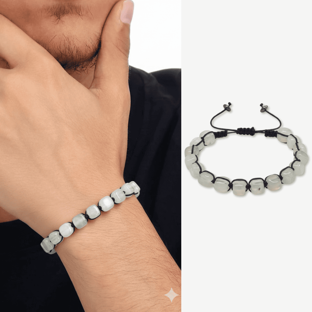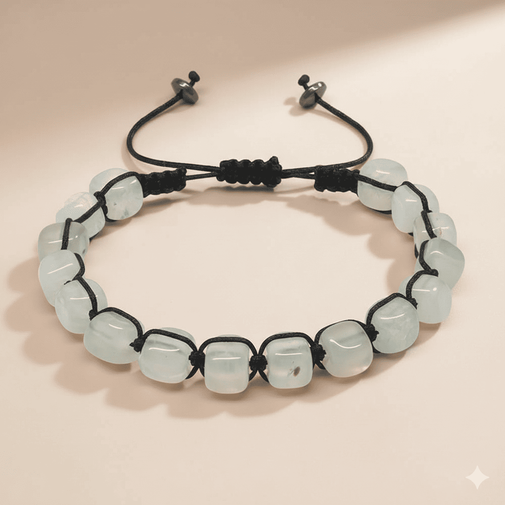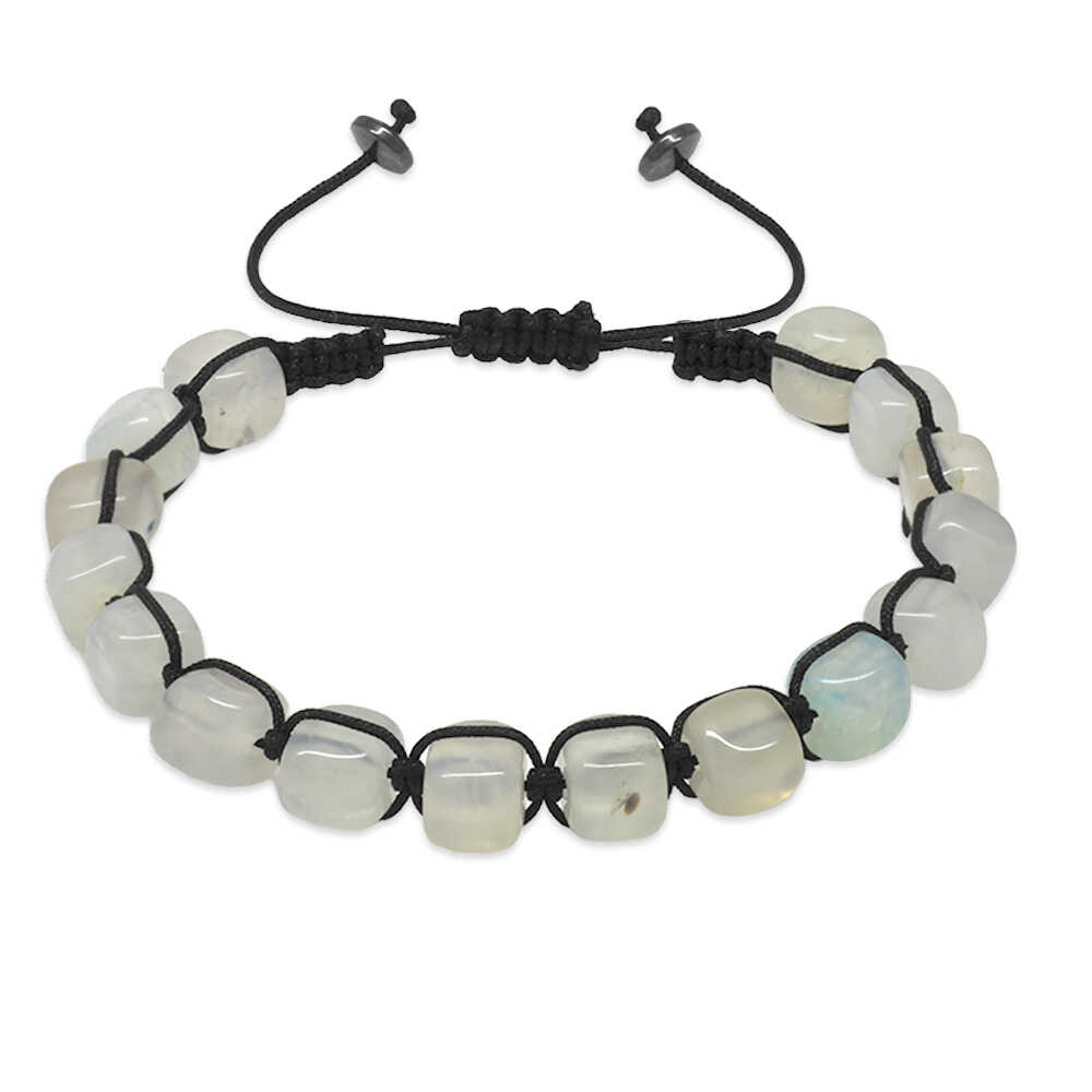Makrome Örgülü Sıralı Küp Kesim Açık Mavi Akik Doğaltaş Bileklik