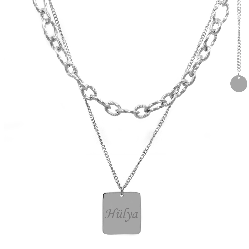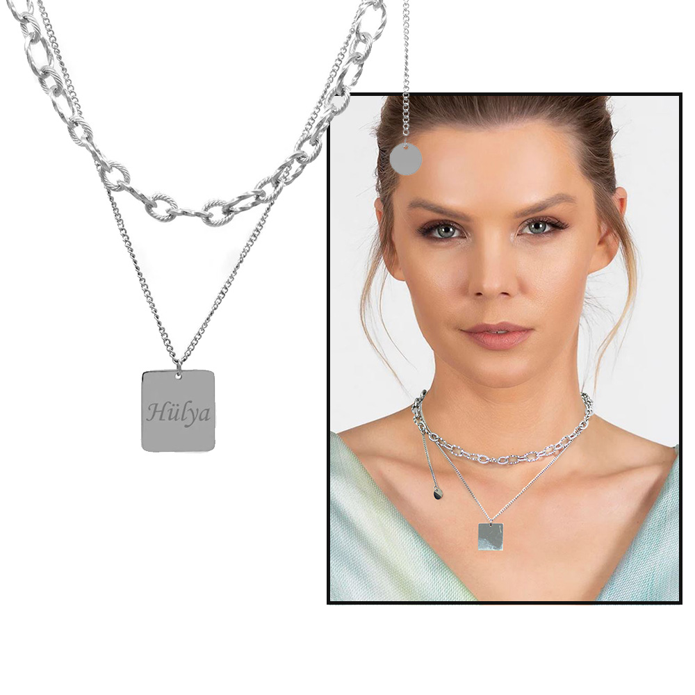 Marina Tasarım İsme Özel Yazılı Gümüş Renk Çelik Kadın Kolye - 2