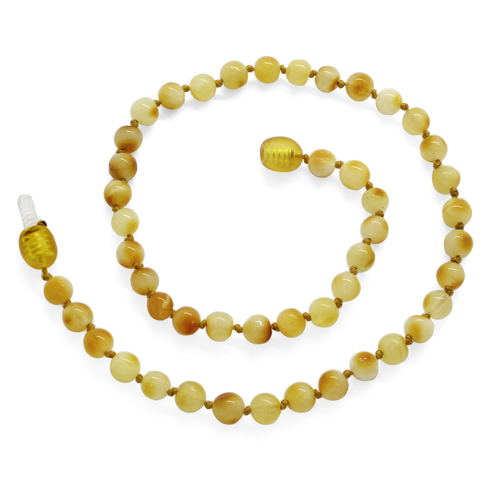 Mat Sarı Doğal Damla Kehribar Taşlı Hareli Mini Boy Bebek Diş Kolyesi - 4