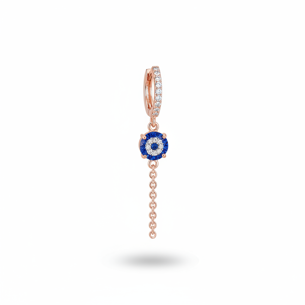 Mavi Beyaz Zirkon Taşlı Çiçek Model Rose Renk 925 Ayar Gümüş Sallantılı Kadın Küpe