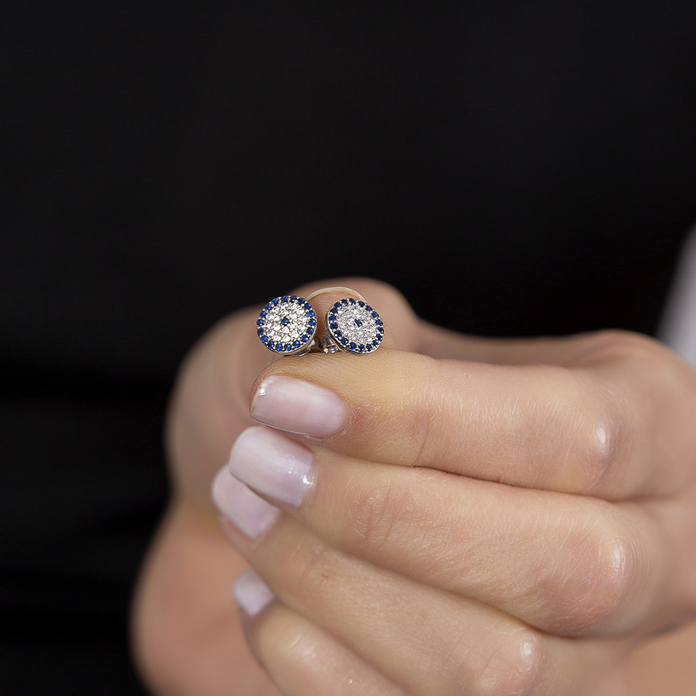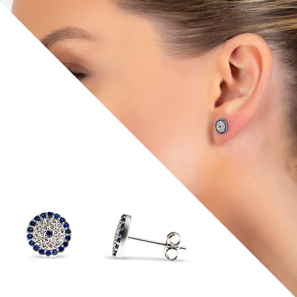 Mavi Beyaz Zirkon Taşlı Çiçek Tasarım 925 Ayar Gümüş Kadın Küpe