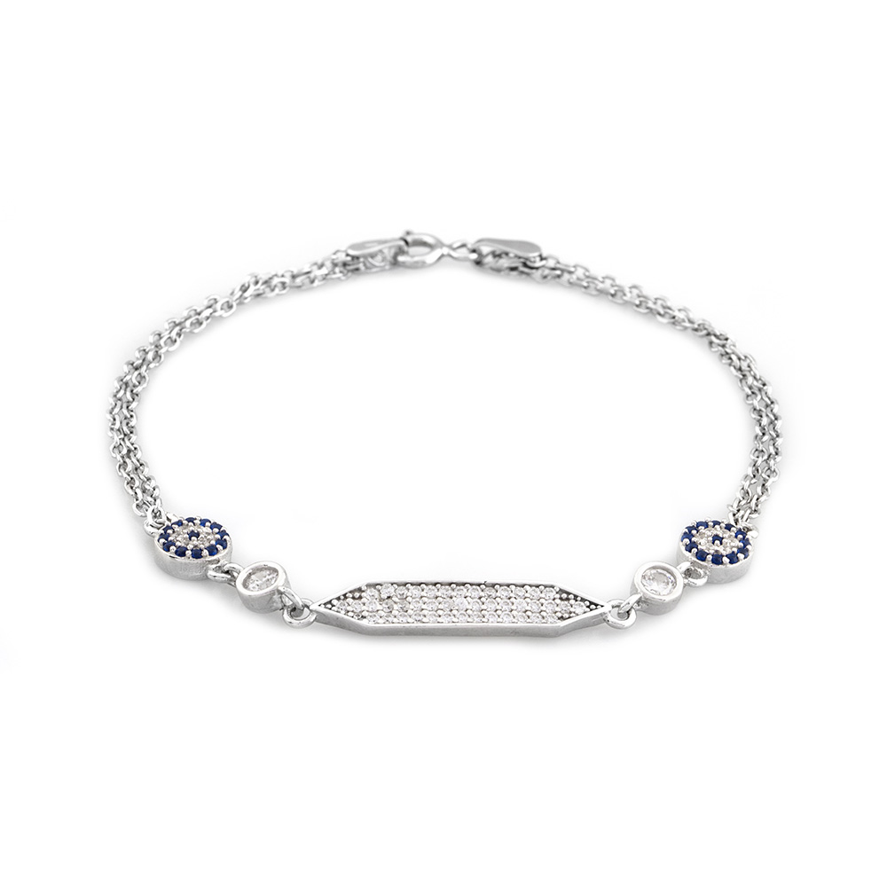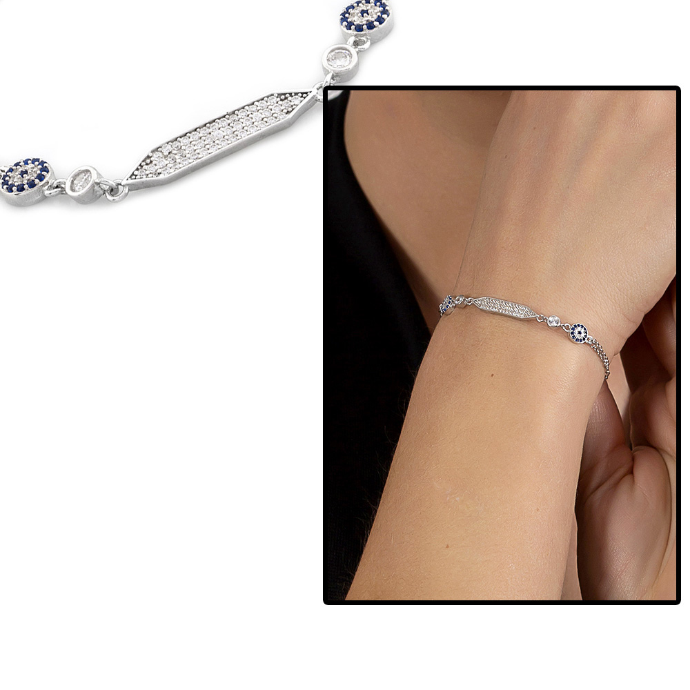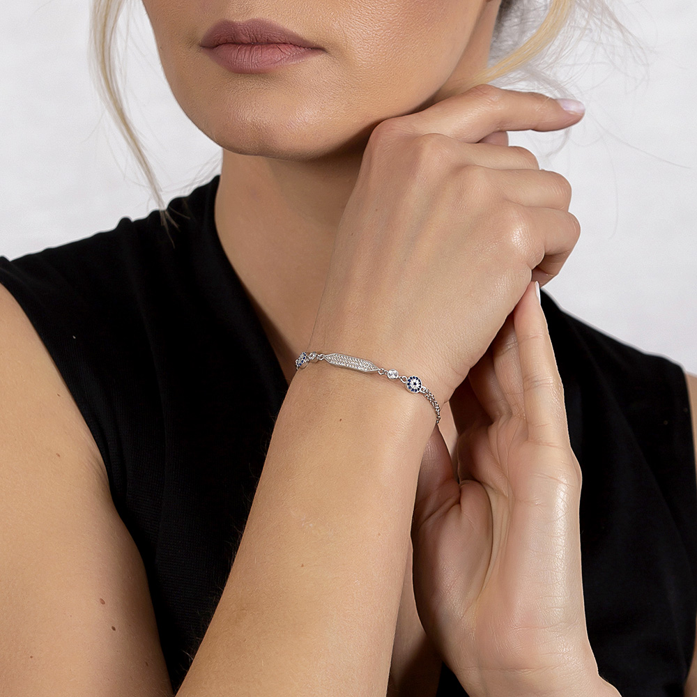 Mavi Beyaz Zirkon Taşlı Çiçek Tasarım Siver Renk 925 Ayar Gümüş Kadın Bileklik