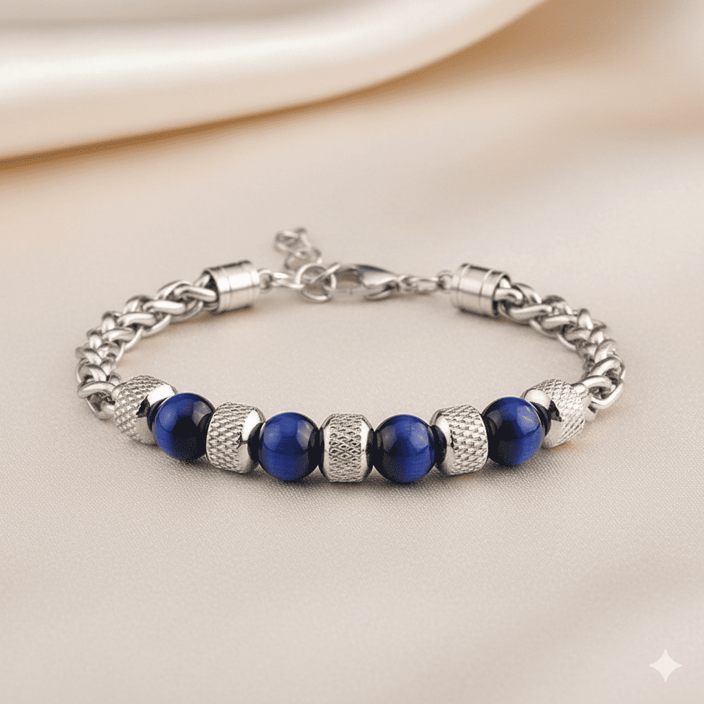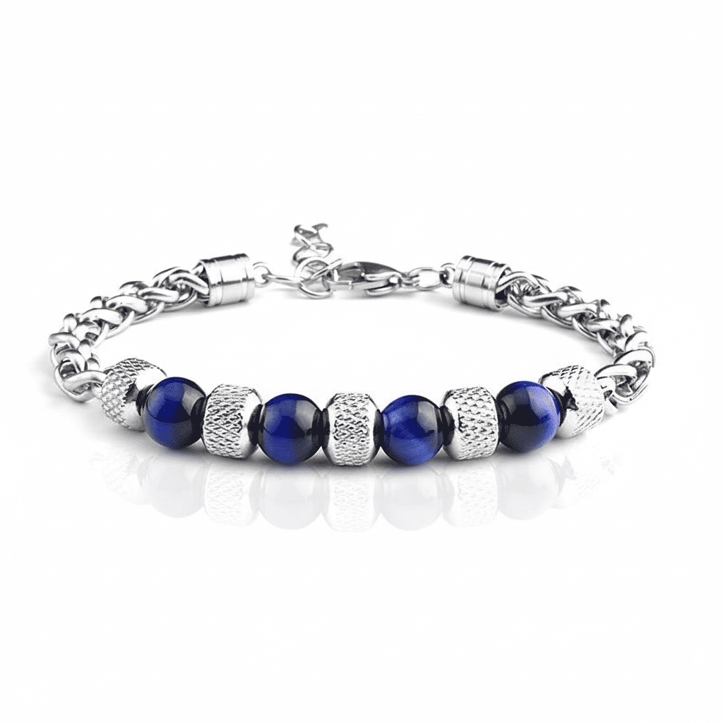 Mavi Kaplan Gözü ve Çelik Bileşim Uzunluk Ayarlanabilir Avangart Erkek Bileklik