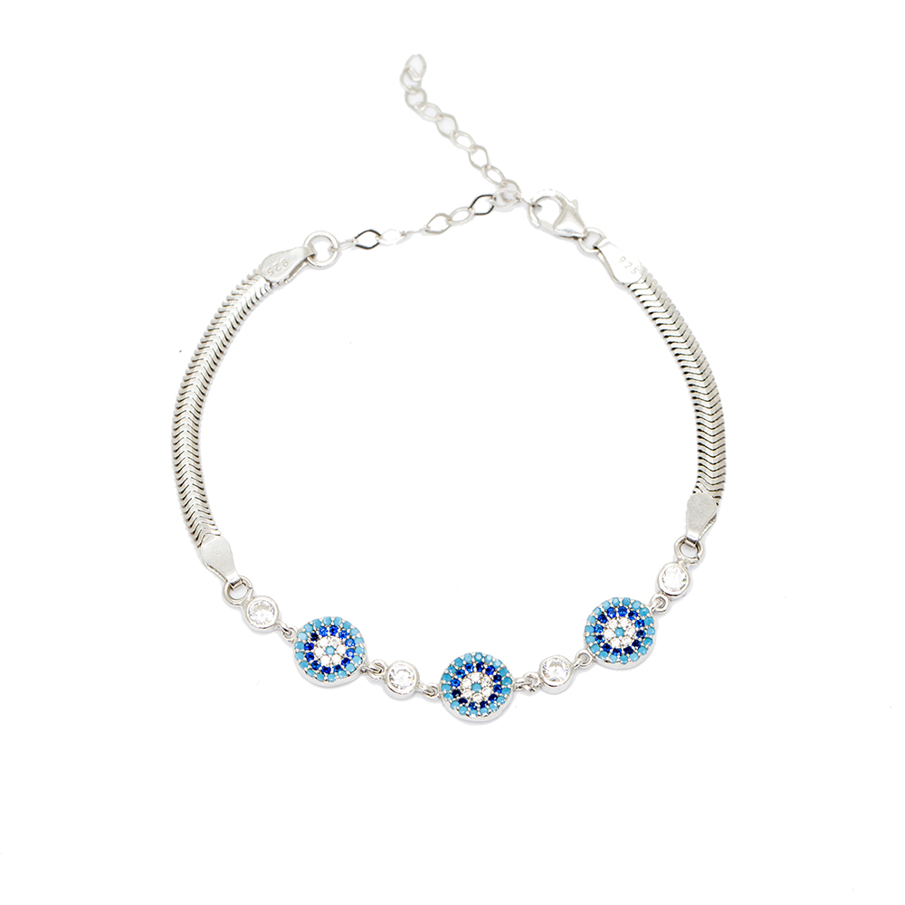 Mavi Turkuaz Zirkon Taşlı Zarif Tasarım 925 Ayar Gümüş Su Yolu Kadın Bileklik