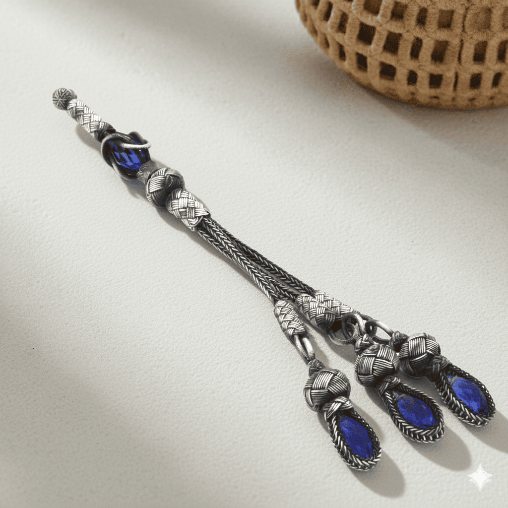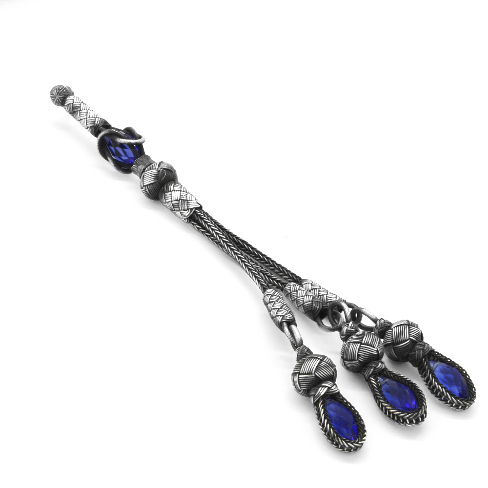 Mavi Zirkon Taşlı 3 lü 1000 Ayar Gümüş Kazaz Püskül