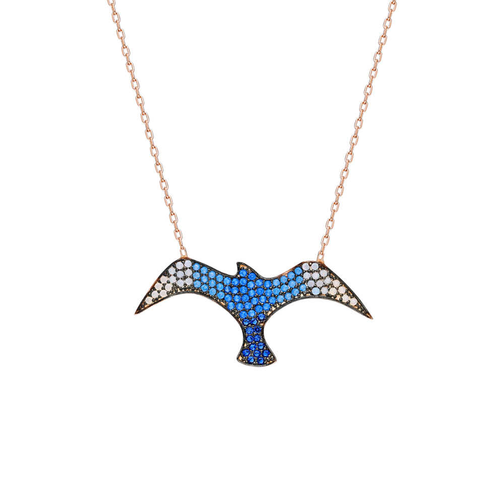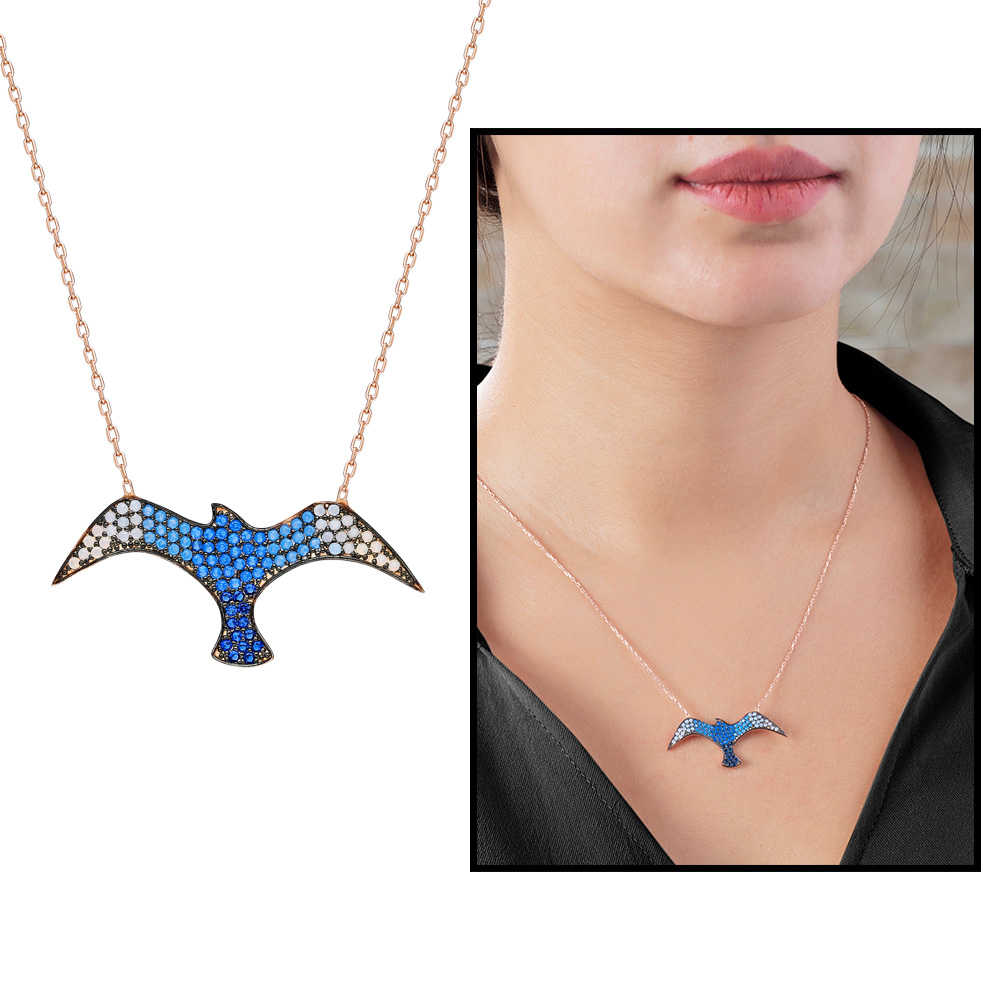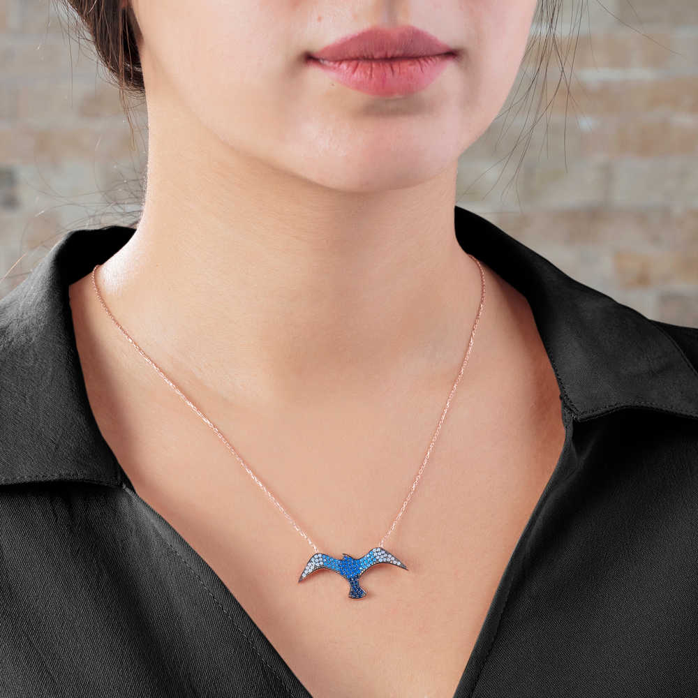 Mavi Zirkon Taşlı Martı Tasarım 925 Ayar Gümüş Bayan Kolye