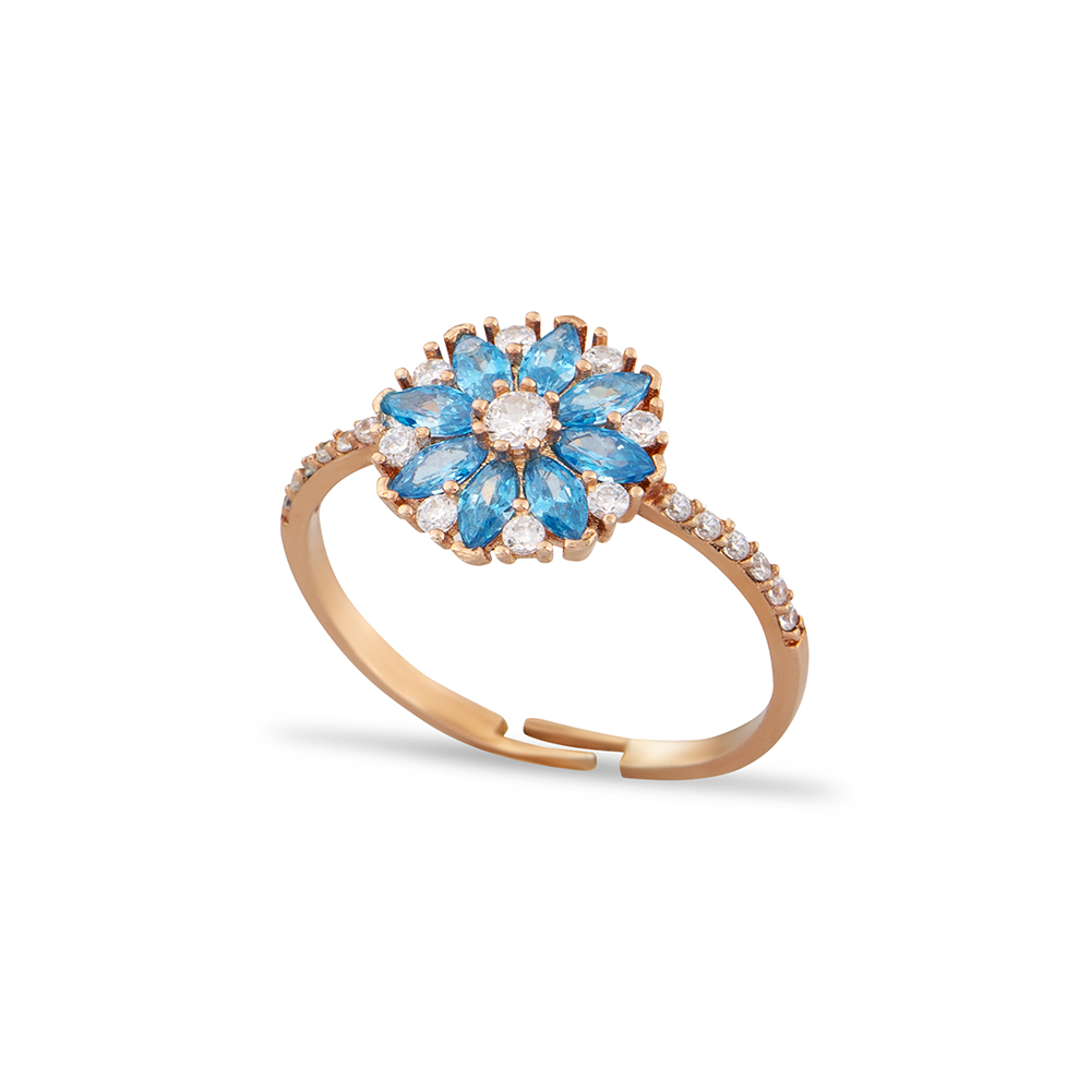 Mavi Zirkon Taşlı Nergis Çiçeği Tasarım Rose Renk 925 Ayar Gümüş Kadın Yüzük