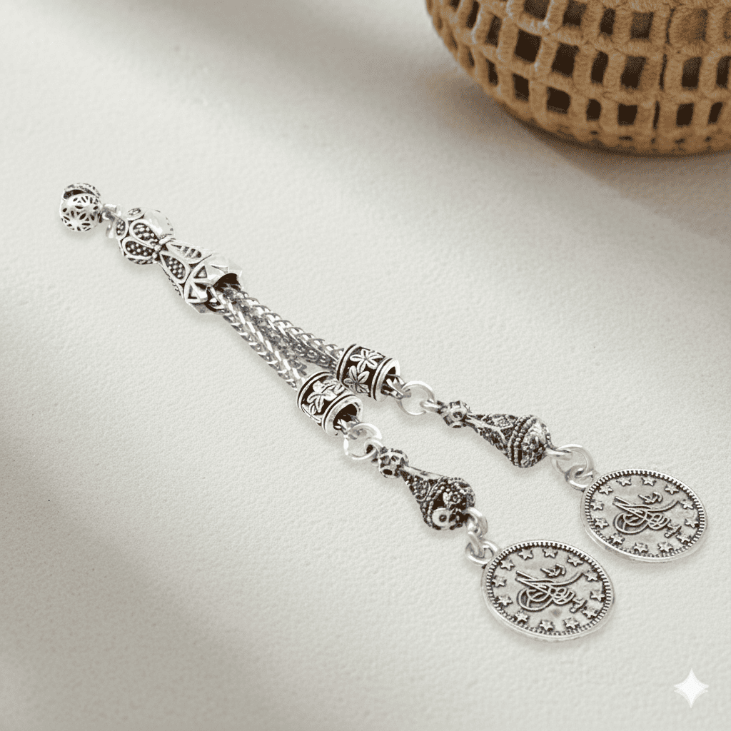 Mecidiye Temalı Foxtail Zincirli Çift Kamçılı Kararmaz Metal Püskül