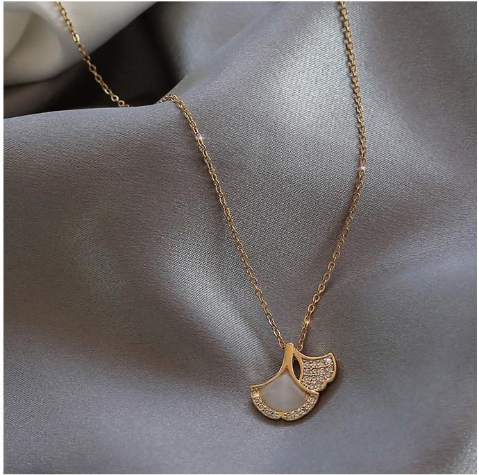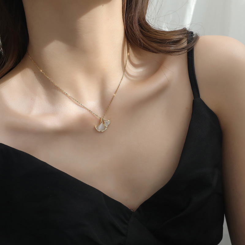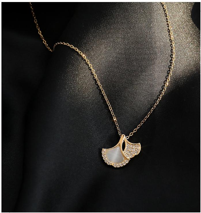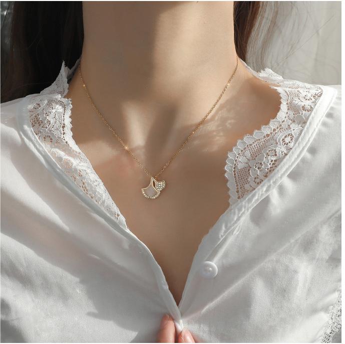 Metal Alaşım Üzeri Altın Kaplama Beyaz Zirkon Taşlı Balina Kuyruğu Tasarım Kadın Kolye