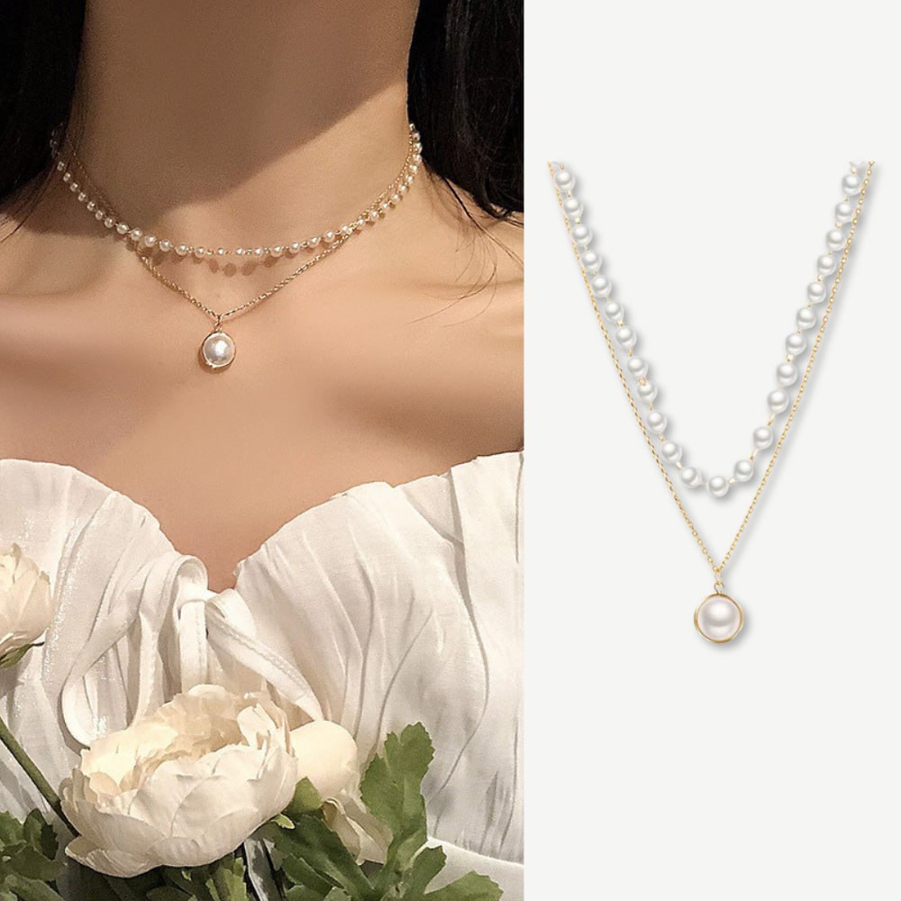 Metal Alaşım Üzeri Altın Kaplama İnci Kombinli Kadın Kolye