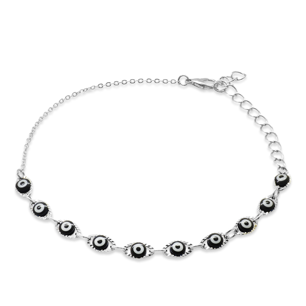 Metal Zincirli Lacivert Mineli Nazar Boncuğu Detaylı Halhal