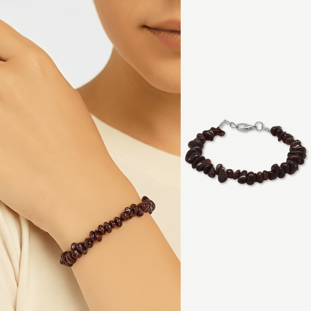 Metal Zincirli Natural Kesim Lal Taşı Doğaltaş Kadın Bileklik