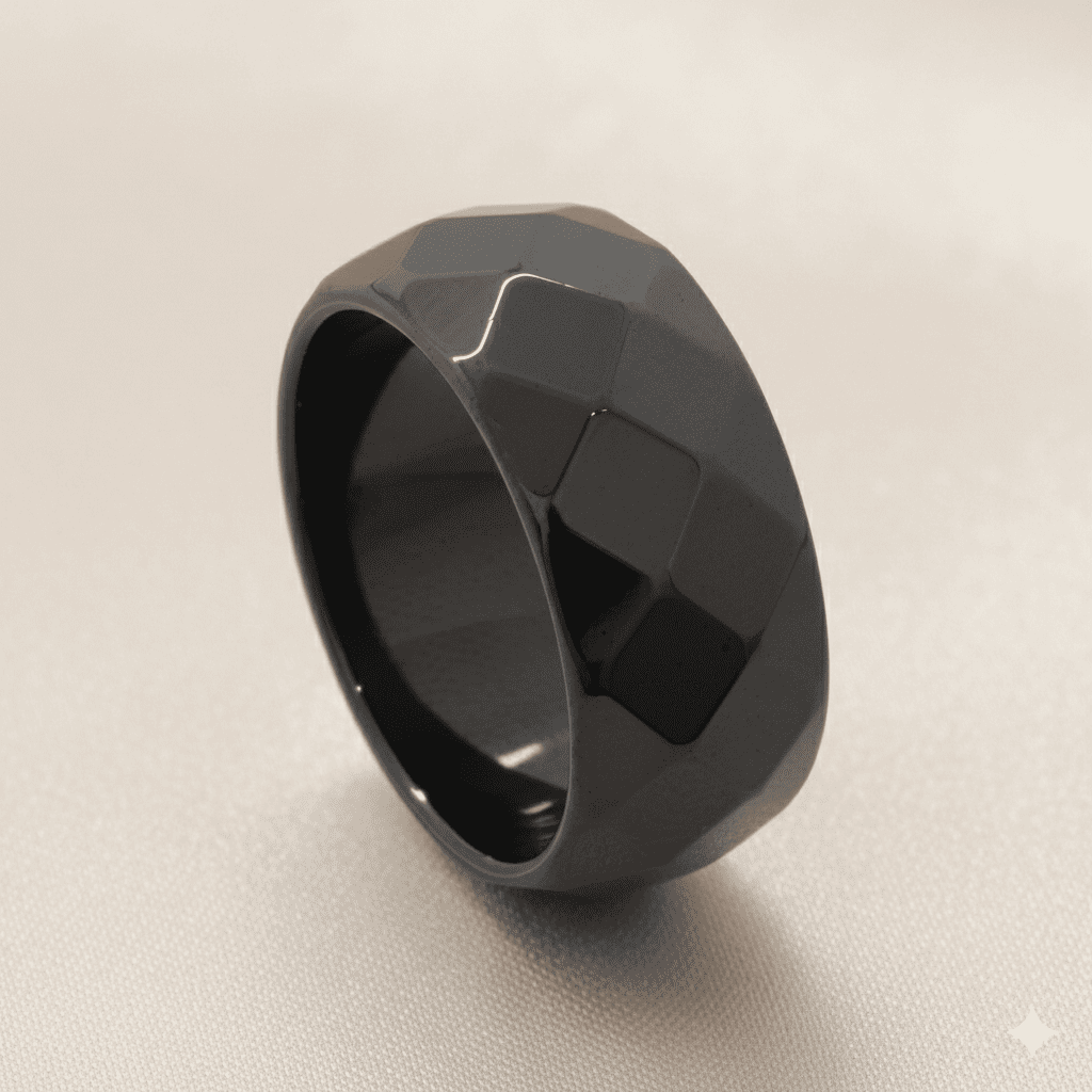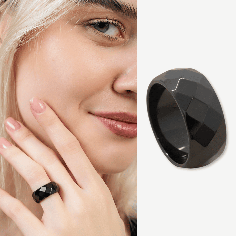 Metalik Gri Renkli Faset Kesim Hematit Doğaltaş Kadın Yüzük 18 Ölçü