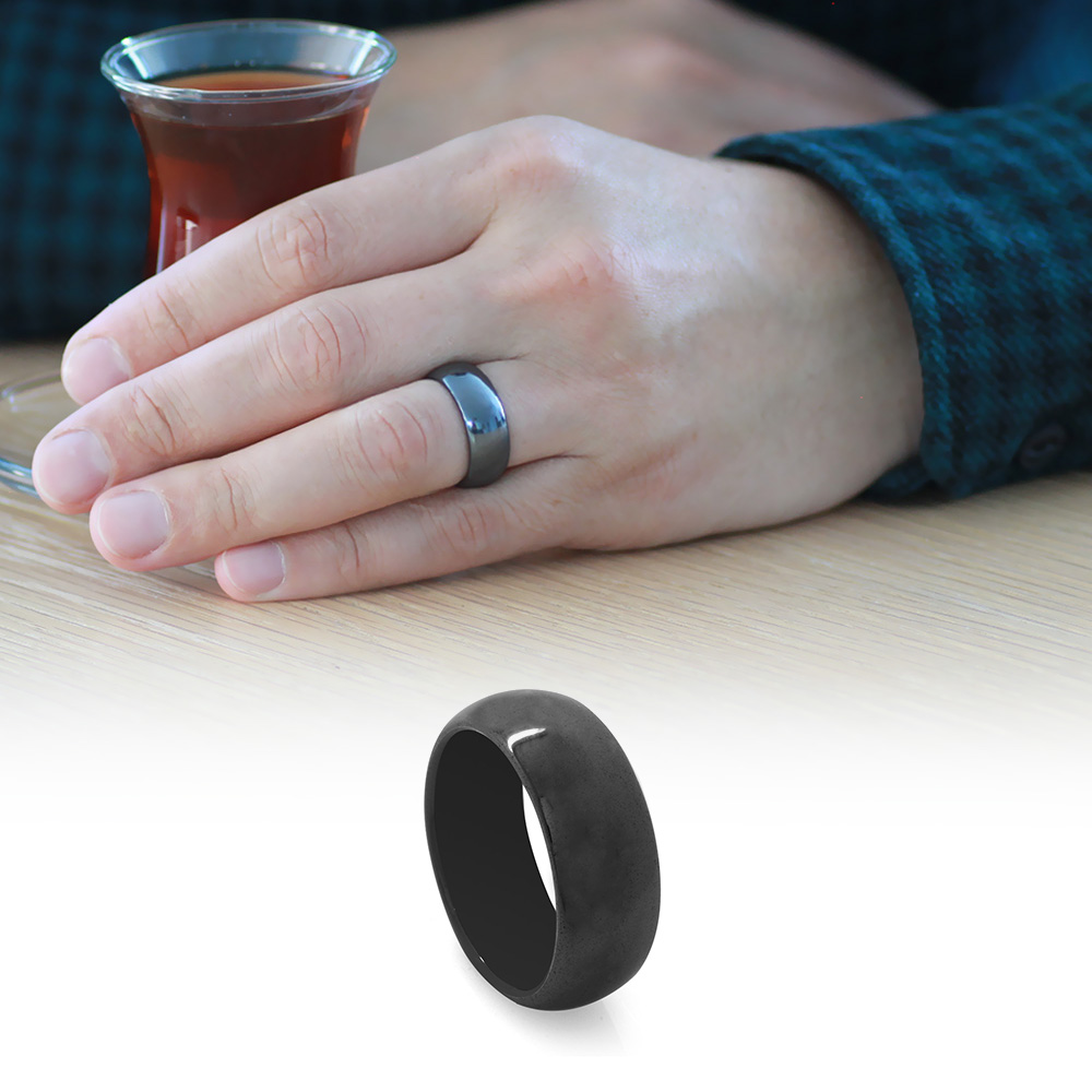 Metalik Gri Renkli Hematit Doğaltaş Erkek Yüzük 17 Ölçü