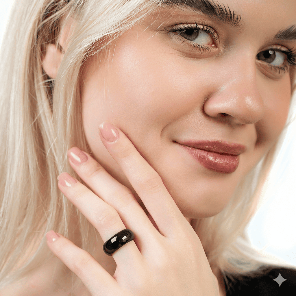Metalik Gri Renkli Hematit Doğaltaş Kadın Yüzük 17 Ölçü