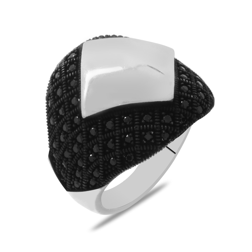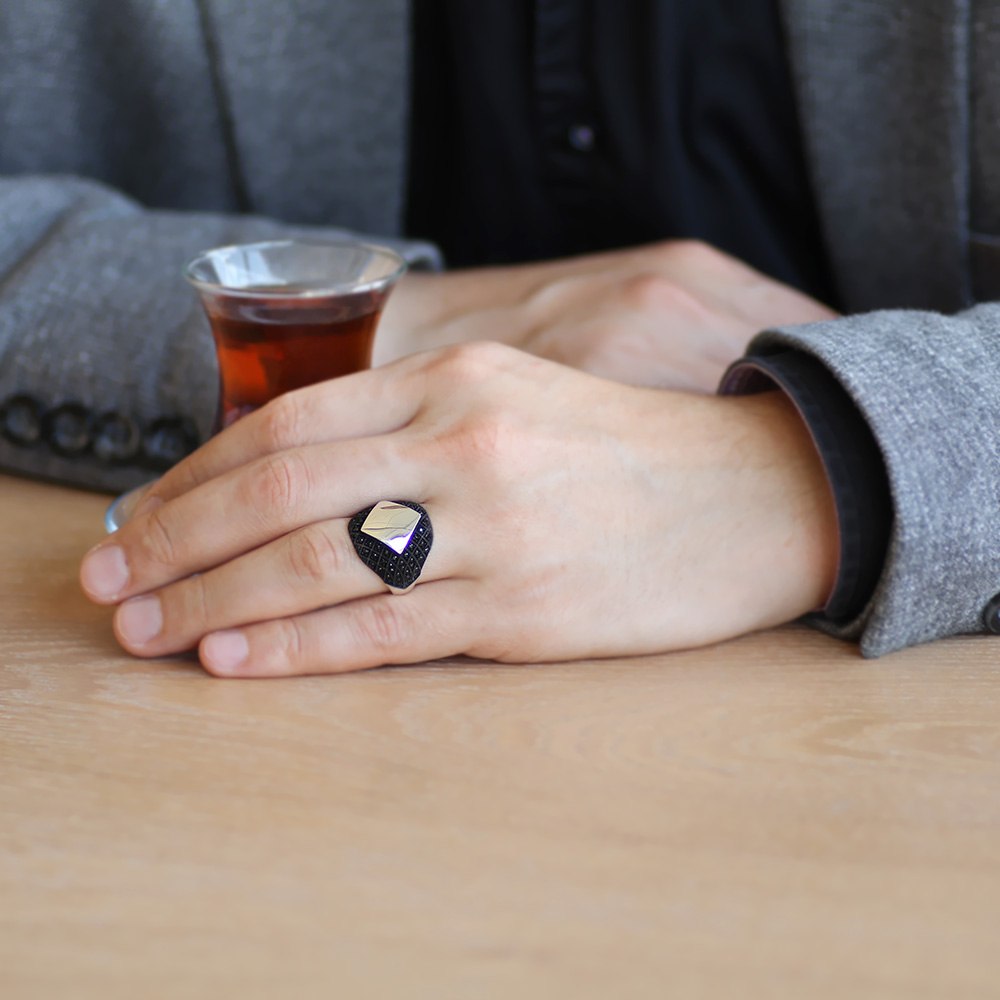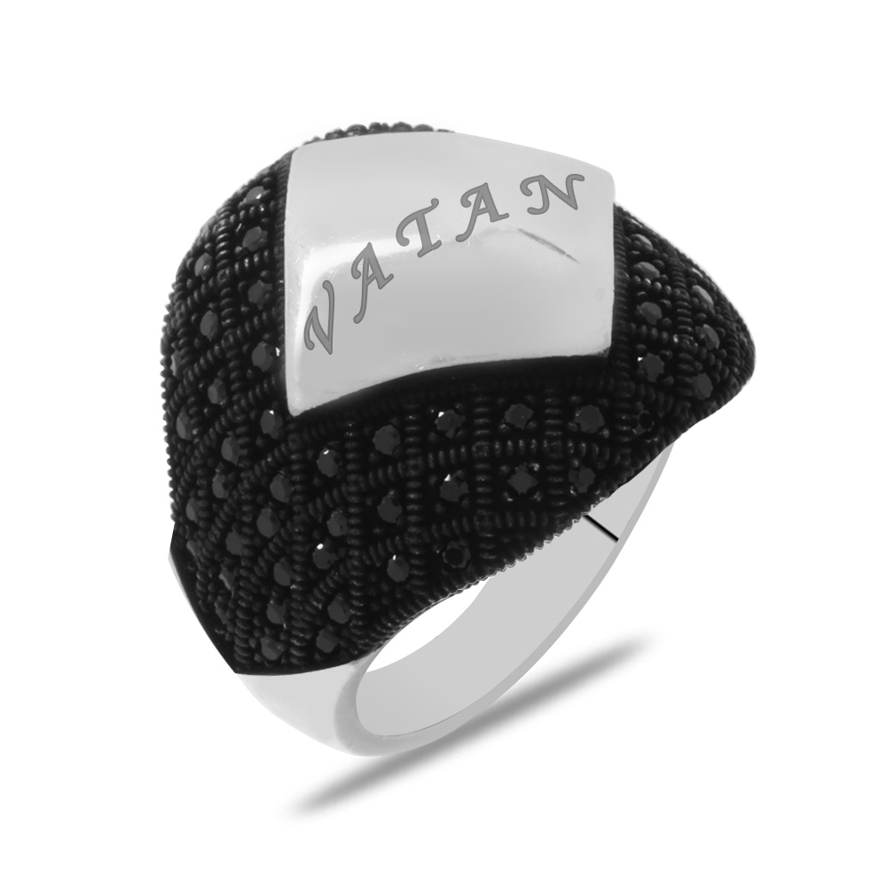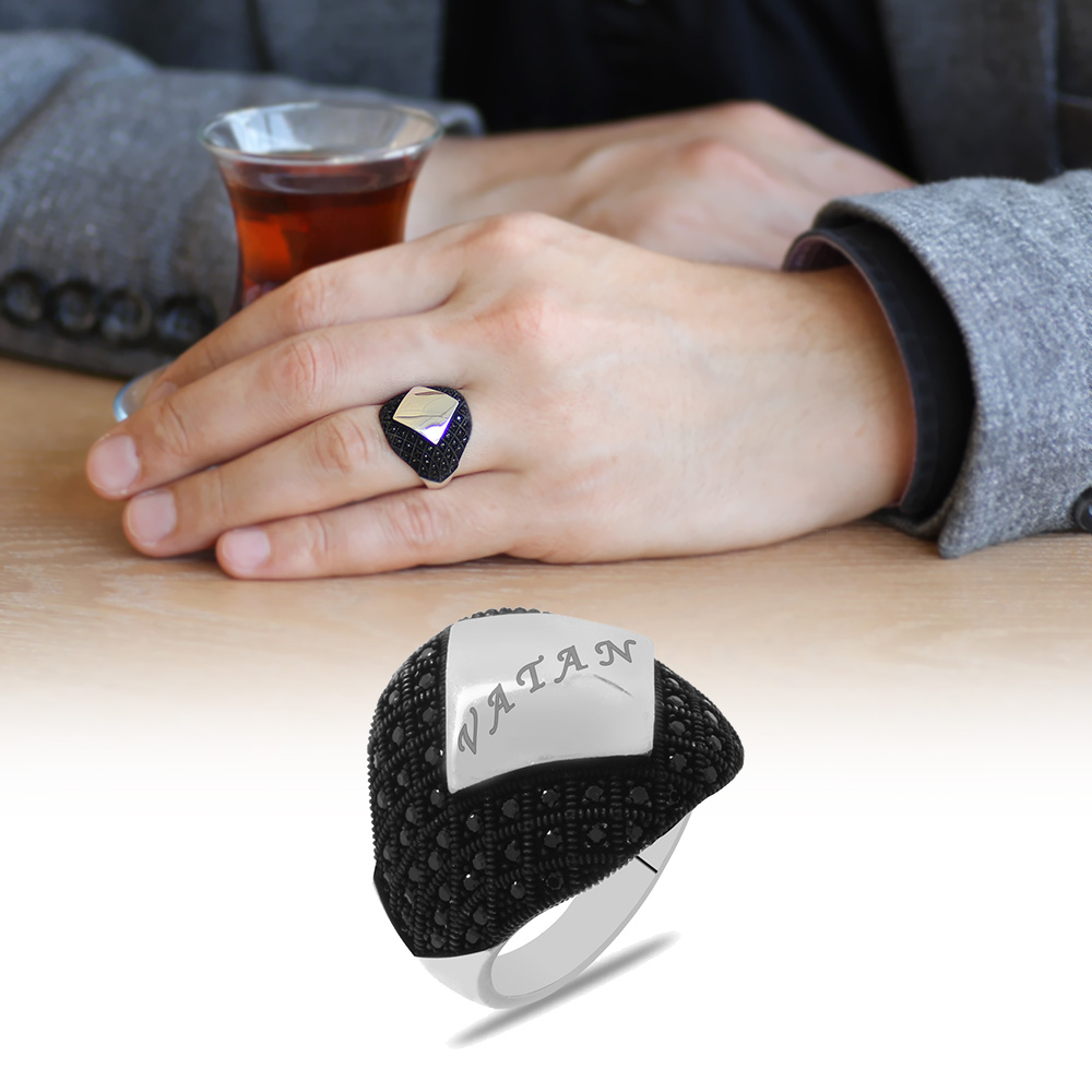 Mikro Taş Süslemeli Kişiye Özel İsim Harf Yazılı 925 Ayar Gümüş Erkek Yüzük