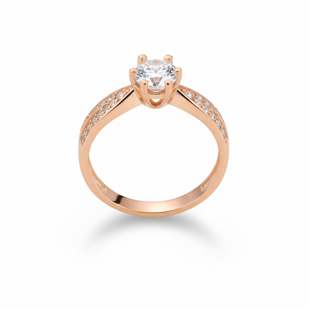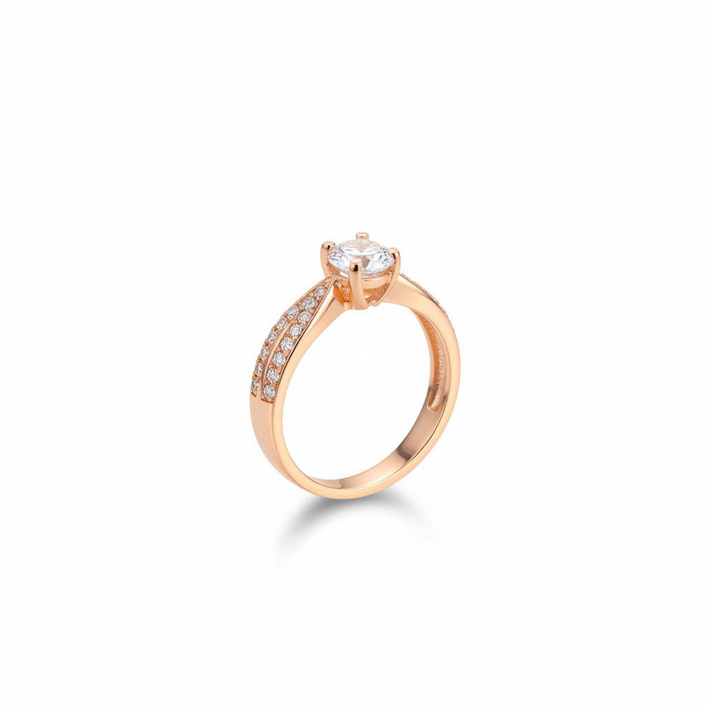 Mikro Zirkon Taş Süslemeli Rose Renk Ayarlanabilir Ölçü 925 Ayar Gümüş Kadın Tektaş Yüzük