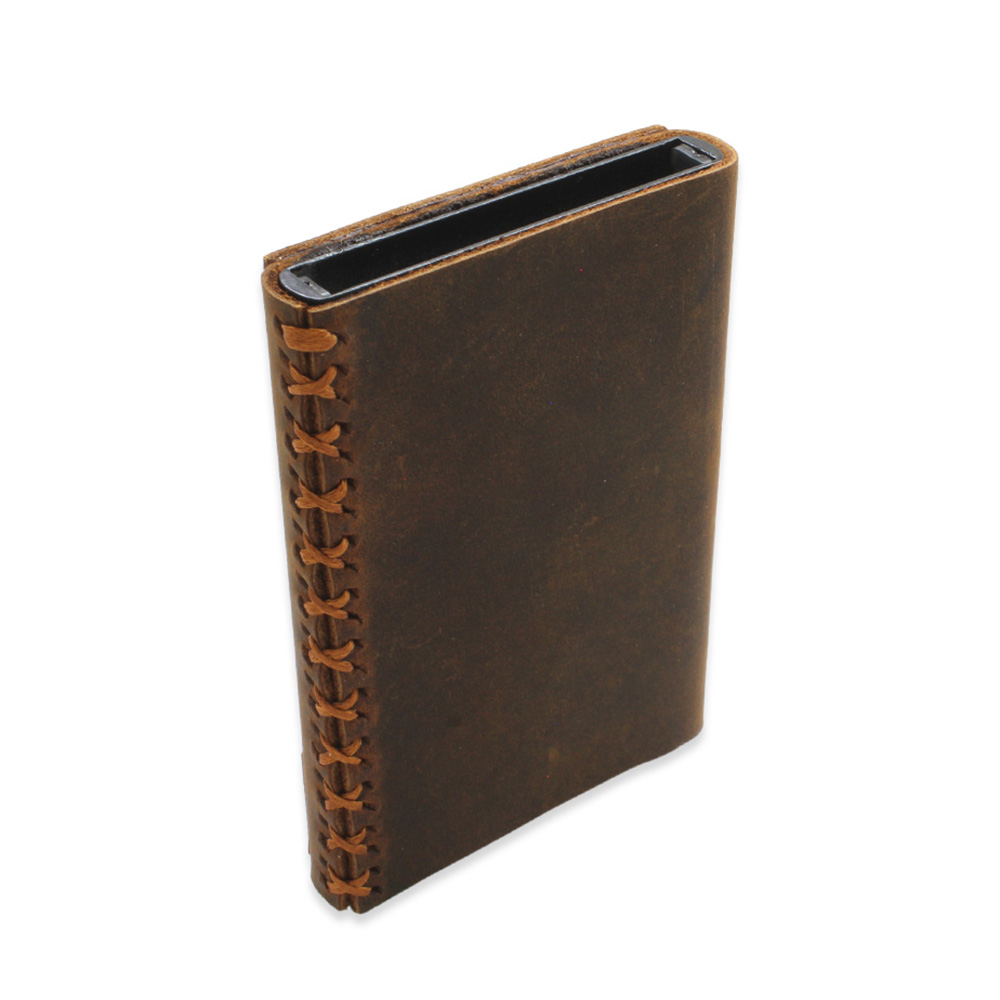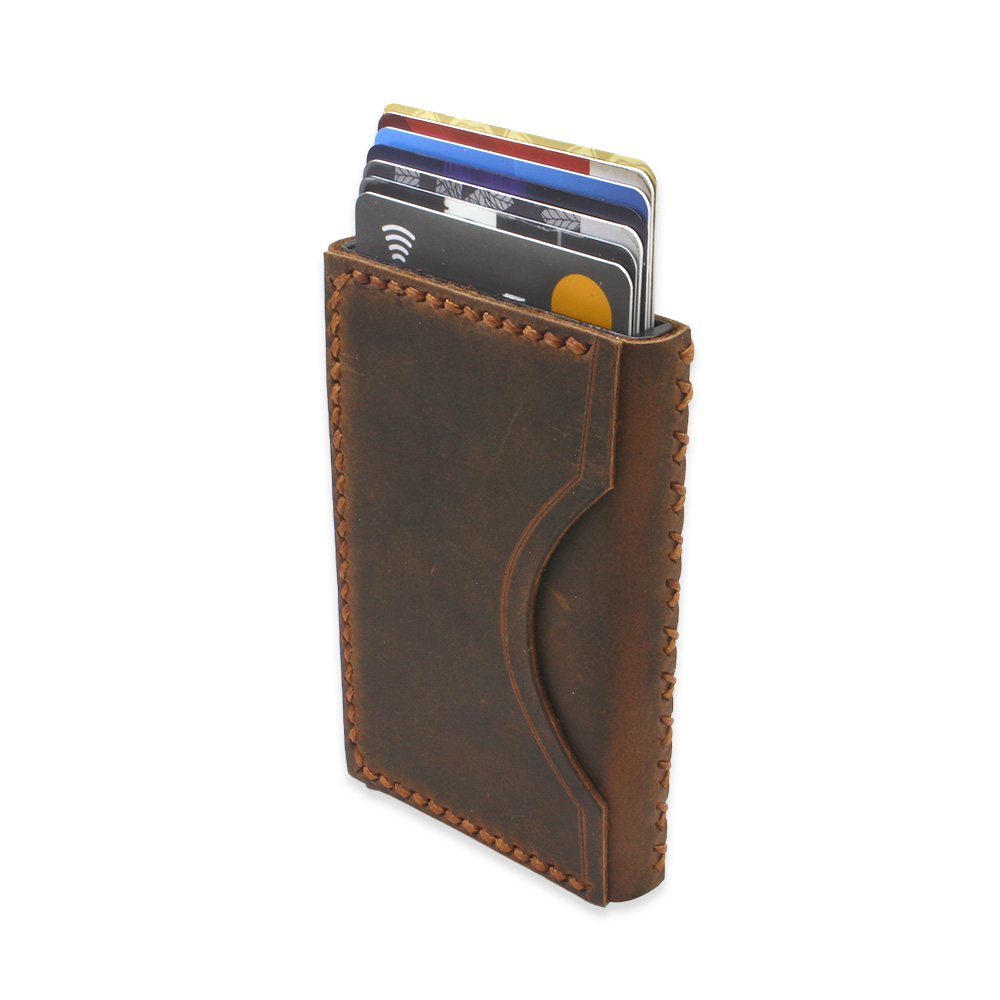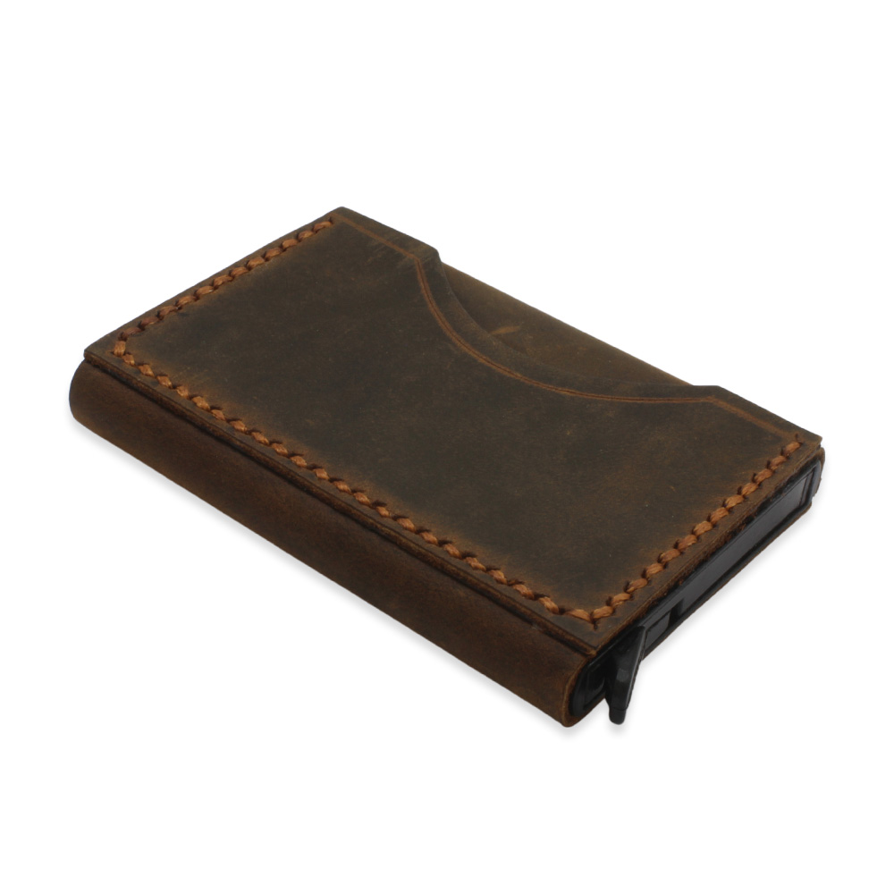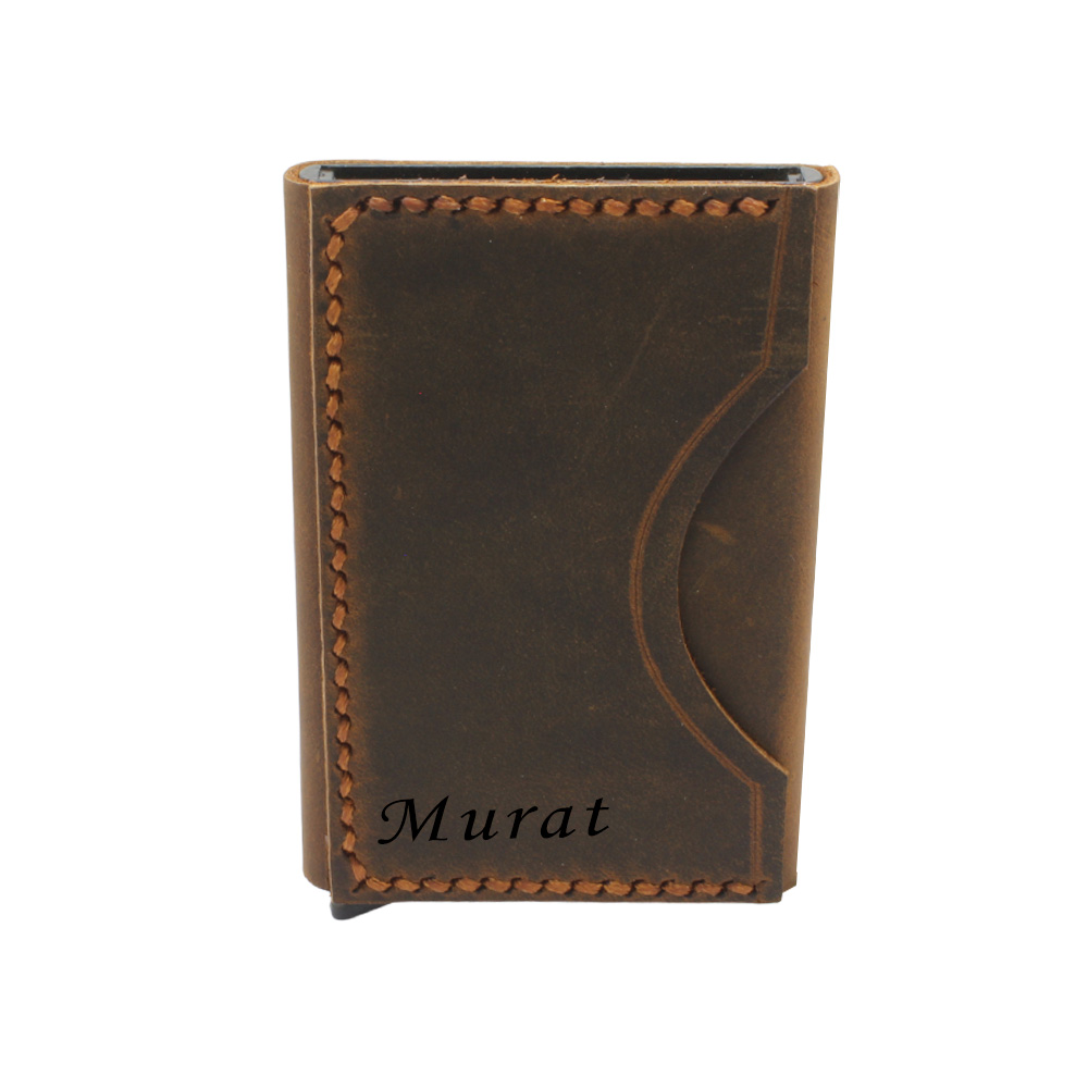 Tamamı El Dikişi Kahverengi Hakiki Deriden Mekanizmalı İsme Özel Yazılı Kartlık Cüzdan M3