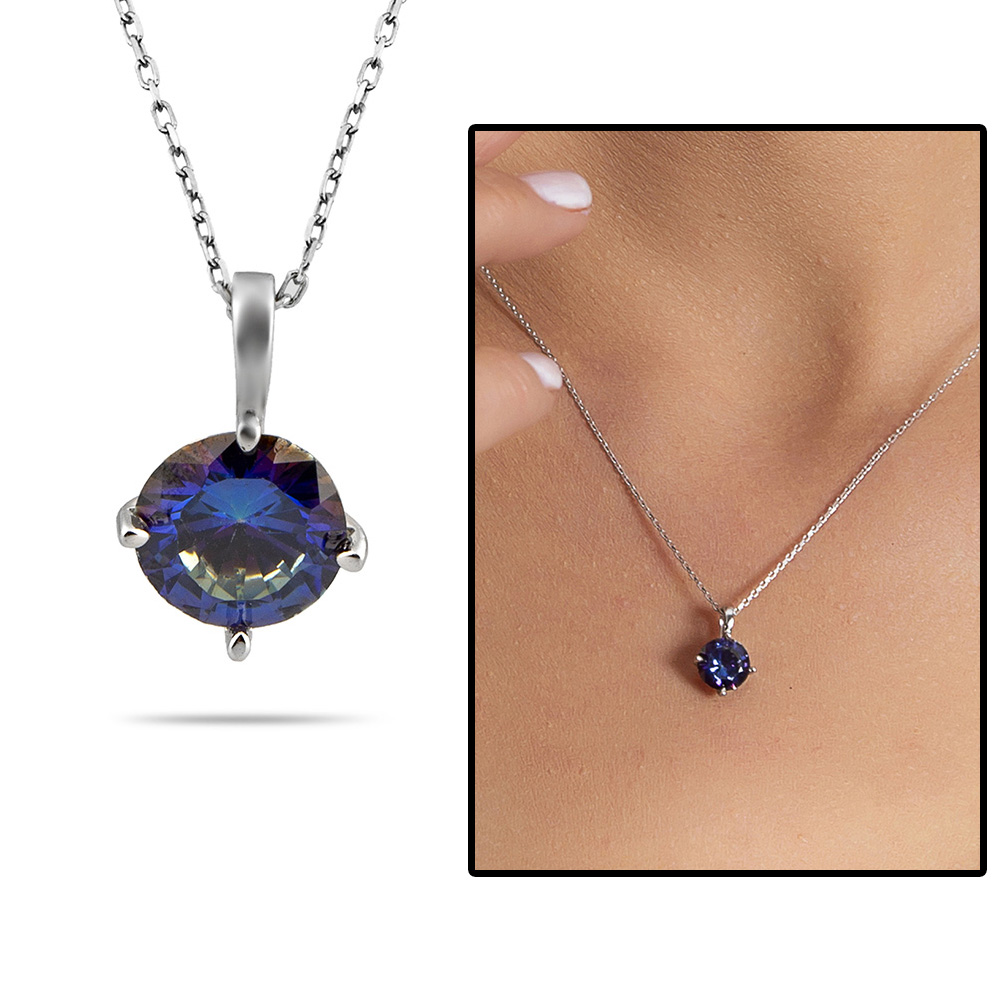 Mistik Topaz Taşlı Oval Tasarım 925 Ayar Gümüş Kadın Kolye - 1