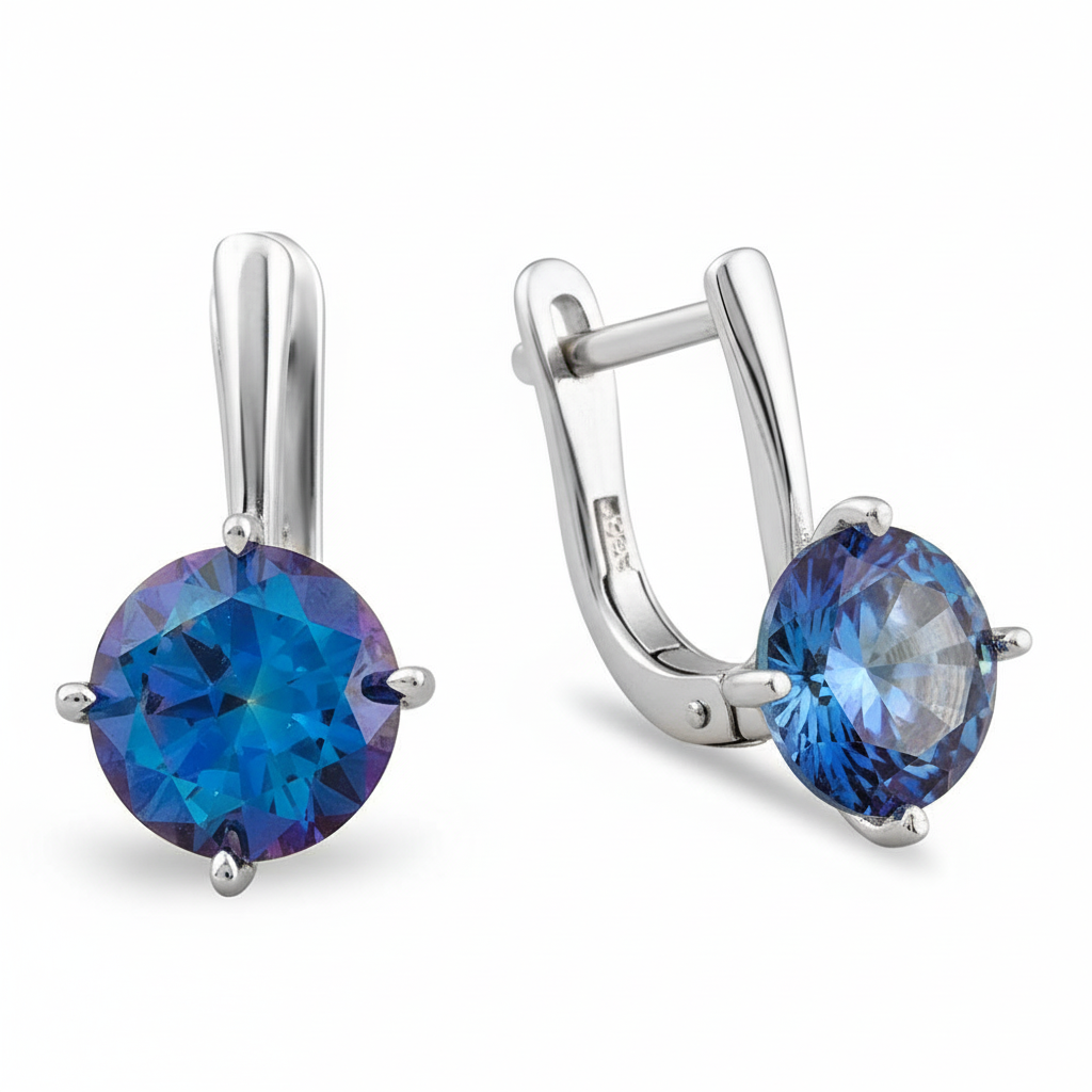 Mistik Topaz Taşlı Oval Tasarım 925 Ayar Kadın Gümüş Küpe